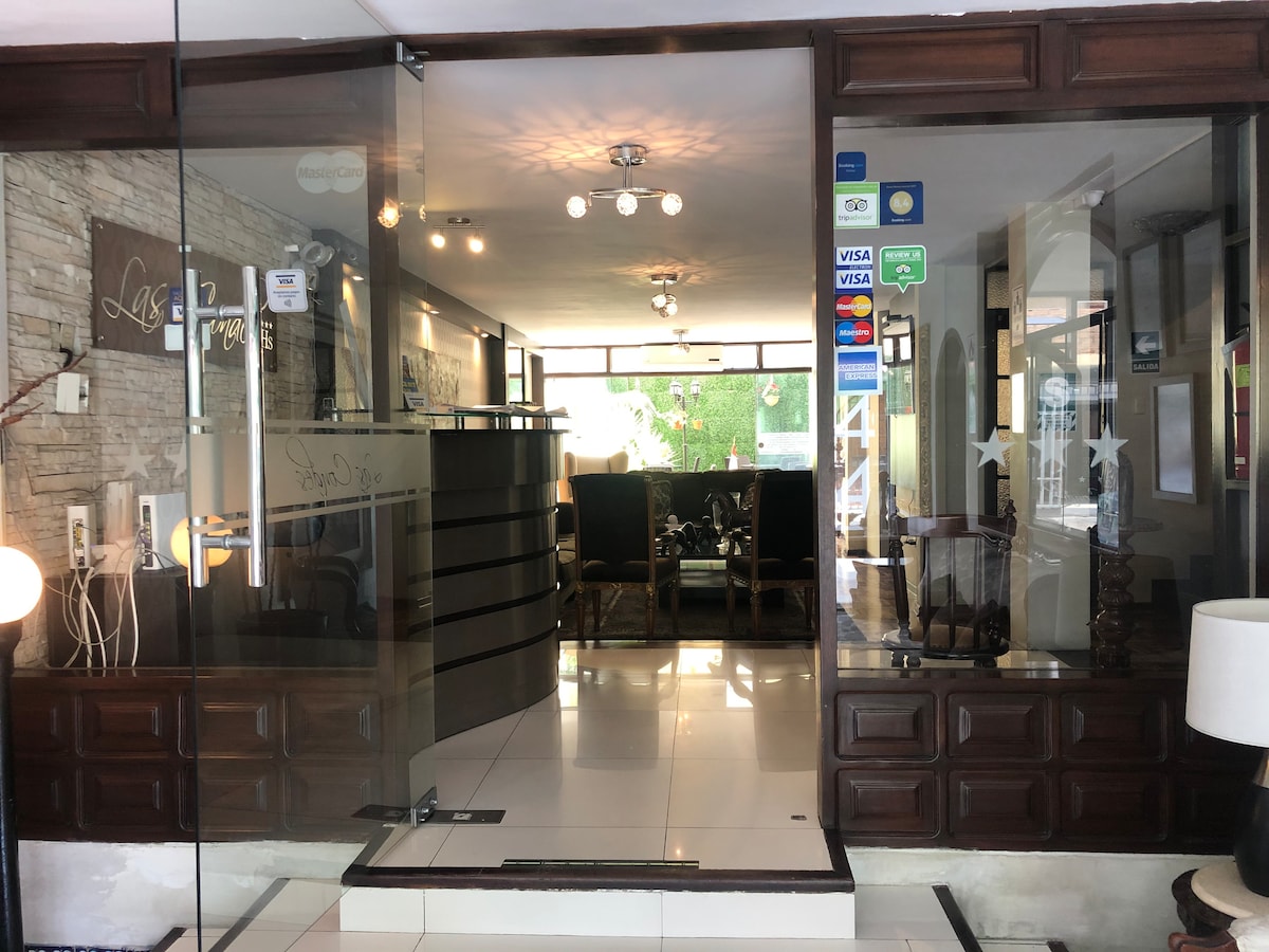 A 2 cuadras de la plaza de armas, bancos, SUNAT, centros comerciales, restaurantes, etc. Tendrás acceso a todo, a pocos minutos. Contamos con cochera gratis para varios vehículos, nuestras habitaciones son amplias y modernas. Tenemos el servicio de limpieza gratuito. Contamos con el servicio de lavandería y restaurante con pago adicional.