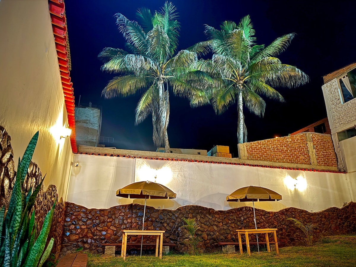 En Casa de Campo Killari , te ofrecemos una experiencia de exclusividad y naturaleza en el corazón de la Campiña de Moche . Hemos diseñado un espacio donde la comodidad de la ciudad se fusiona con la paz del campo. Podrás disfruta de un espacio amplio, acogedor y rodeado de naturaleza, ideal para familias, parejas y grupos de amigos que buscan relajarse y vivir experiencias. Características principales del alojamiento: Amplias areas verdes. Piscina. Area de parilla . Fogata Bar