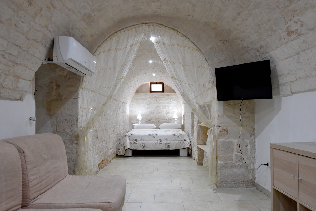Deliziosa casa in pietra in pieno centro monumentale ad Alberobello; l'appartamento, completamente indipendente, è dotato di aria condizionata, riscaldamento, bagno privato, angolo cottura, lavatrice, camino perfettamente funzionante; la casa si trova a 20 metri dalla Chiesa monumentale a Trullo e da un parco giochi per bambini. È possibile aggiungere 2 divani-letto . Ha un piccolo patio in cui è possibile parcheggiare auto di media dimensione