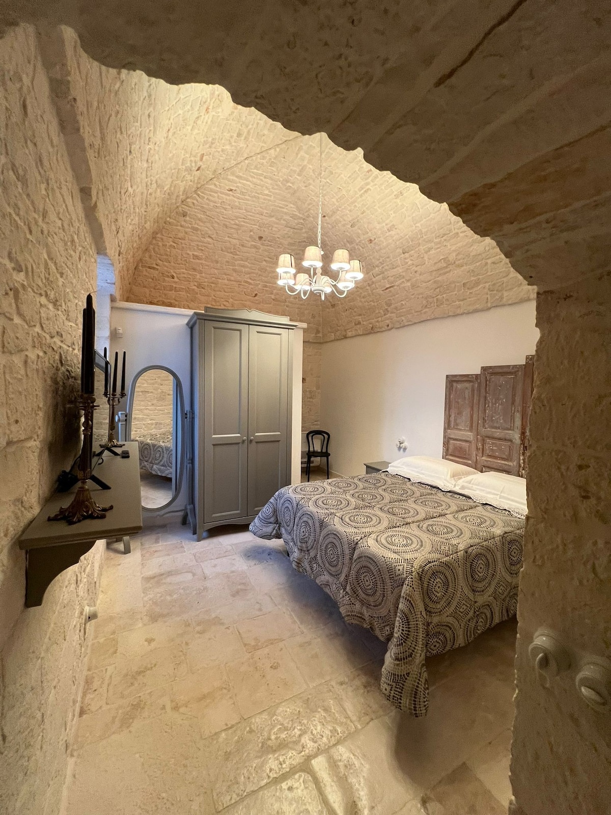 Suite matrimoniale nel centro storico di Alberobello, accanto al Trullo Sovrano, in un vicolo tranquillo e silenzioso. In una dimora storica, la suite è una tipica “Cummersa” = abitazione tipica dal tetto spiovente (cum vertice per la conformazione del tetto) con soffitto a volta. Vi troverete immersi in un ambiente unico, completamente in pietra. Ideale per una coppia che vuole trascorrere un soggiorno nella magica Alberobello, in centro, ma lontano dalle più caotiche e affollate vie del paese.