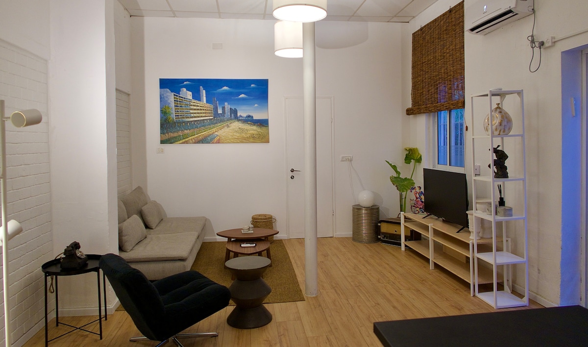 Located on beautiful, quiet, central Hovevei Zion St., right off Bugrashov, just 4 minutes away from the beach, and near all the most desirable restaurants, bars and cafes.