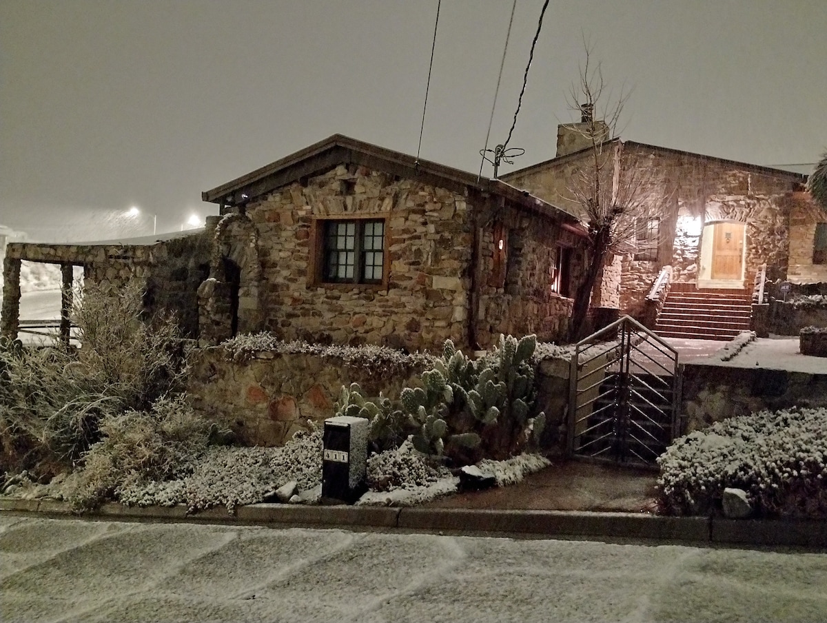 Welcome to our desert oasis paradise the Love❤️Shack w/ Hot Spring in historic downtown Truth or Consequences PRIVATE HOT SPRING soaking tub with sky-blue penny tile. 24hr access! Natural hot springs coming from the ground. Healing water. Robes provided Full modern kitchen. Newly renovated bathroom. Stylish sitting area with dedicated work space. Full sized bed with nice sheets. Mini split heating/cooling Restaurants, brewery, grocery store, and Rio Grande (river) all within walking distance