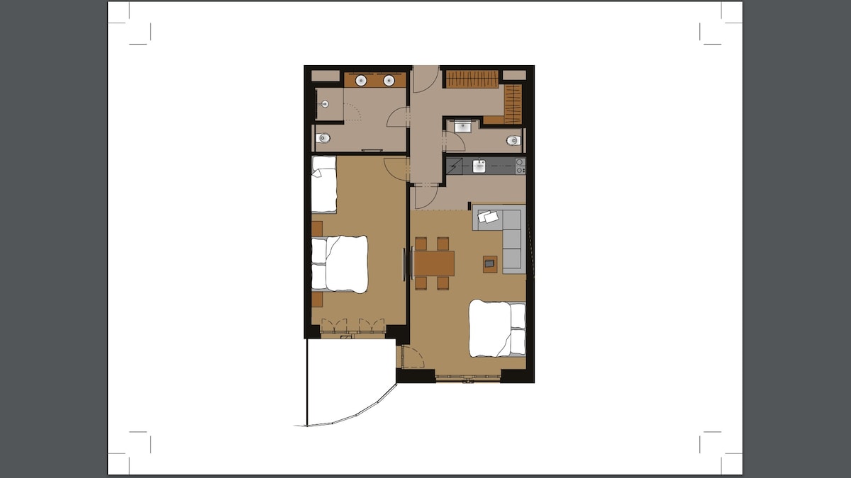 Our very comfy and well designed Flat is located in a newly finished property made up to high standards. This Apartment is located on the first upper floor with no elevator, pls. Property itself is located in very quite are, on the beginning of Spindleruv Mlyn. Is a very attractive part valued by the locals still connected to city centre. It is just a 30 metres walk away from the Cablecar and Ski Slope Labska as well as a few steps away from the Labska Lake.