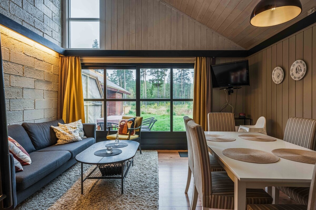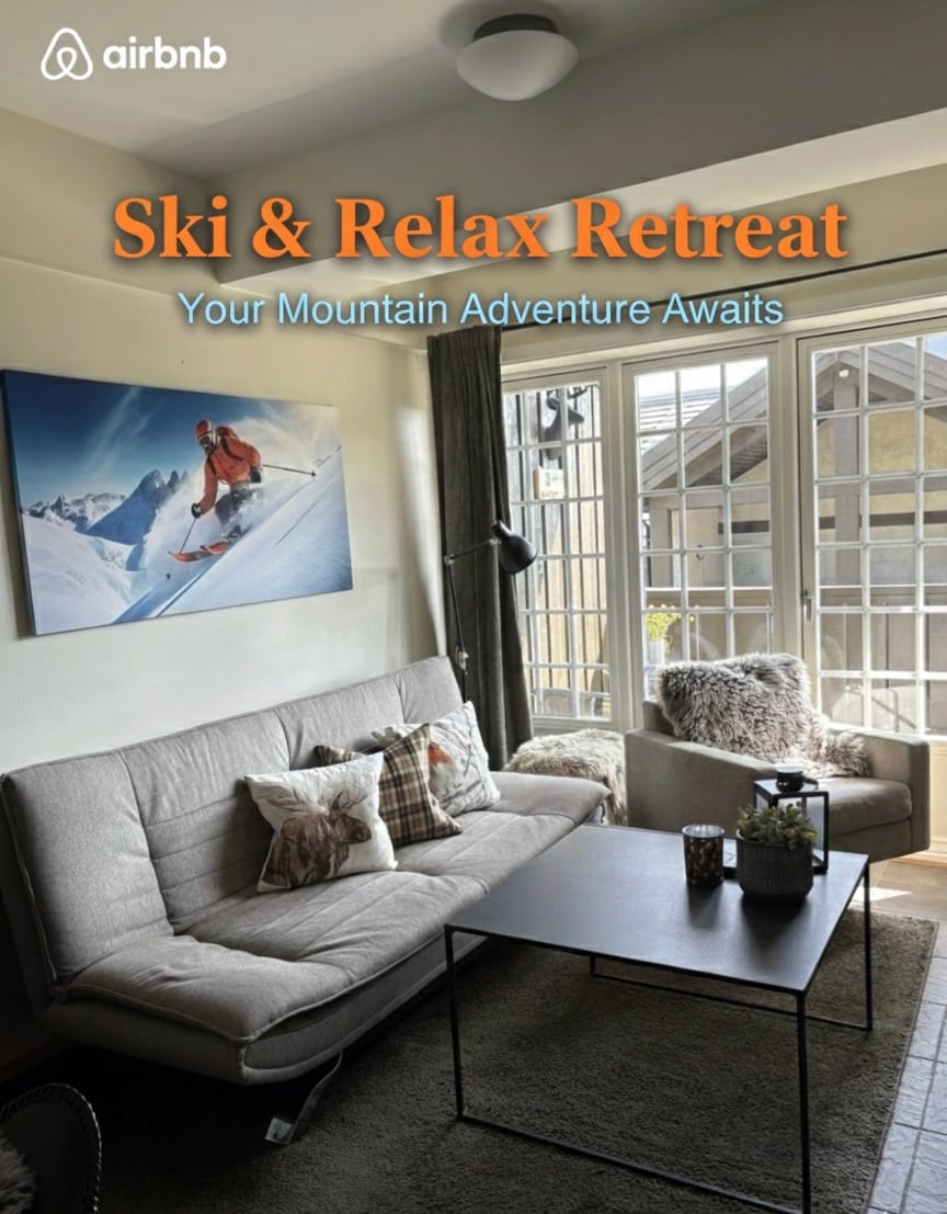 Leiligheten er innredet som en lun og koselig hytte. Den har høy standard og det er kort vei til det meste; alpint, langrenn, golf, klatrepark og sykkelløyper. Gangavstand til matbutikk og hotellet med restauranter, svømmebasseng, bowling m.m. Leiligheten er over 2 etasjer med 2 stuer, 4 soverom, 2 bad (ett med sauna), 2 TV`er og 2 verandaer. Her er nok plass til å være både sosial og privat! Det medfølger 2 plasser i p-hus.