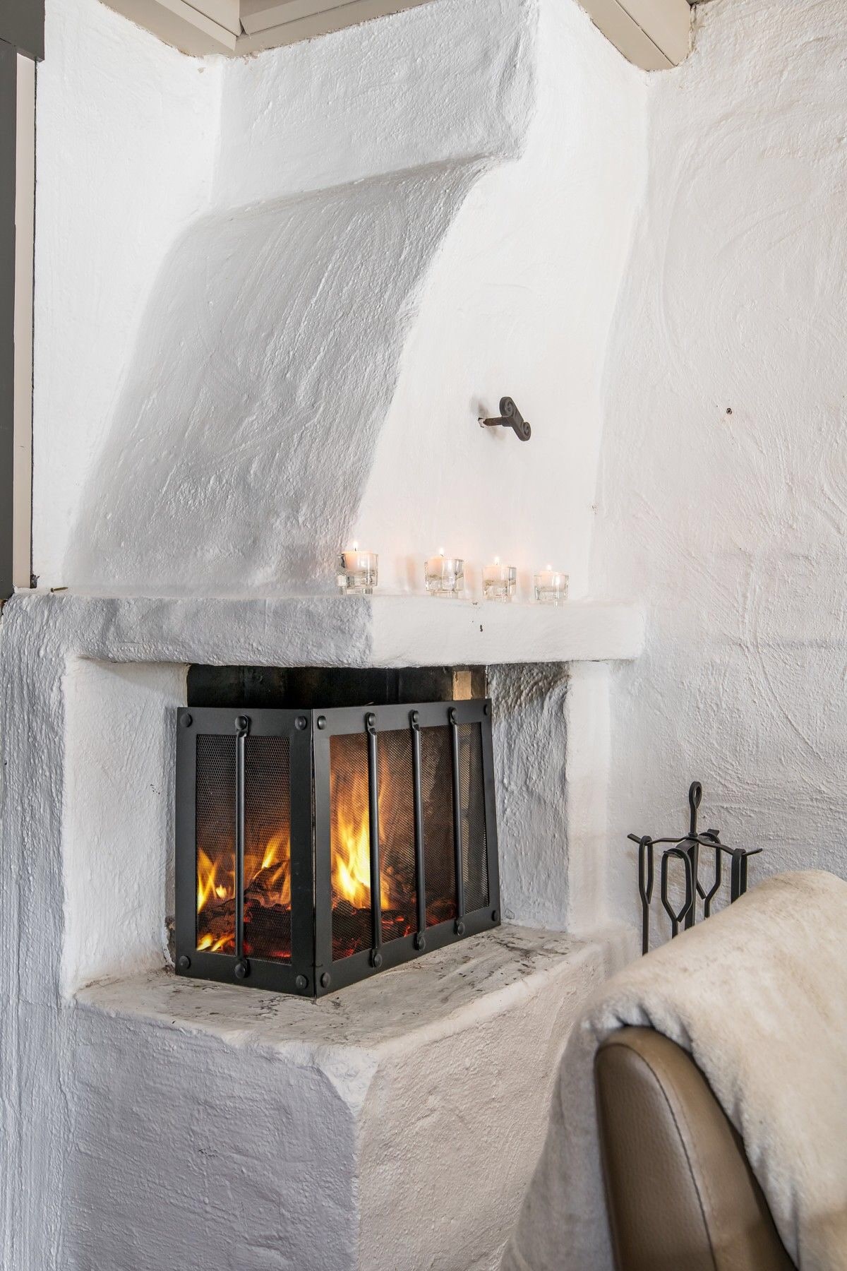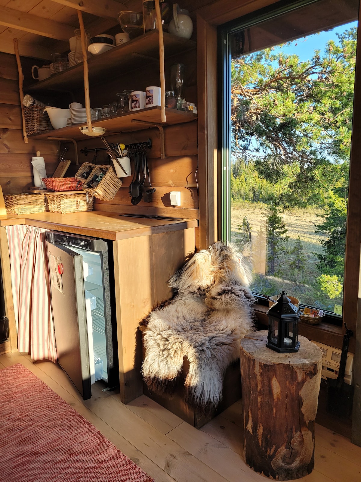 Mysig stuga med två öppna spisar