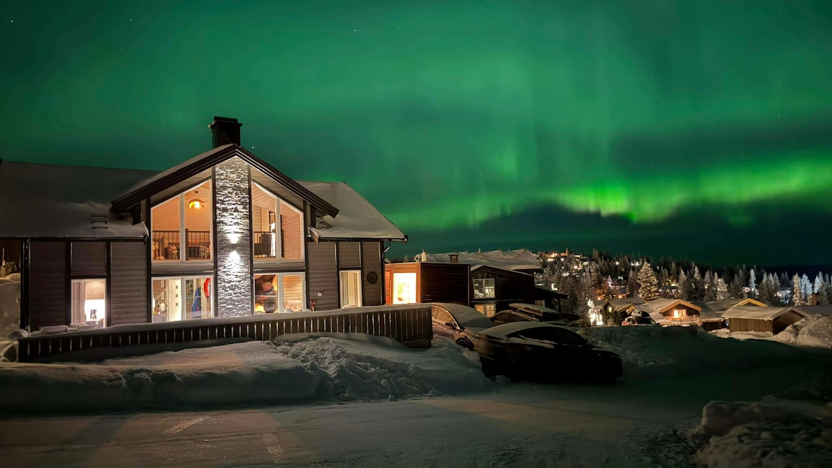 Välkommen till vår hytte! Stugan är nyuppförd december 2023 och har generösa sällskapsytor med öppen planlösning. Matbord för 12 personer och soffor framför en vedspis, allt med fin utsikt över fjällen. Vill barnen vara för sig själva finns även en tv och soffa en trappa upp. Efter en dag i backen kan ni njuta av bastun i huset och jacuzzin precis utanför.