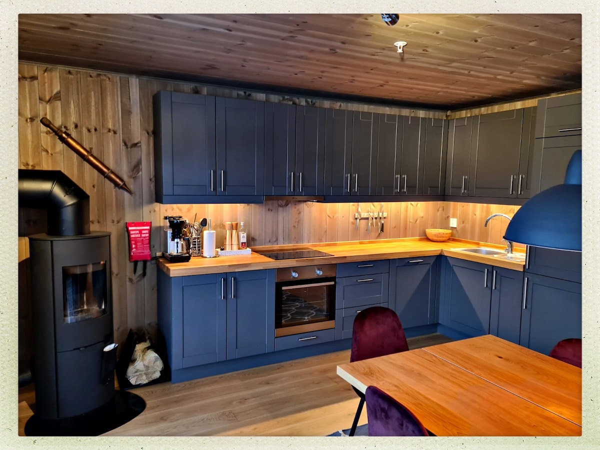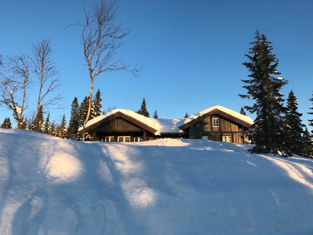 Modern cabin with three bedrooms and two bathrooms. Perfect for two families.The cabin is located at Trysilfjellet next to the skiing slopes, overlooking the town and valley of Trysil, Norways larges skiing resort. Access to and from the slopes (or MTB in Summer) is right next to the cabin. So no car or ski bus needed. The cabin is newly renovated with a modern, well-equiped kitchen and bathroom. The cabin is heated electrically and has an addional wood stove for extra heat and cosyness.