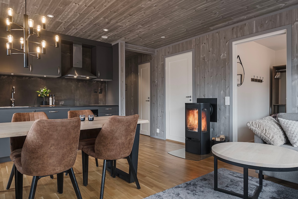 This cabin is located in the heart of Trysil Turistsenter, so everything is within a short walk. The place suits best for a group of up to 6 adults, or two families with kids (up to 8 incl. children). The standard in the cabin is modern and comfortable, with a genuine vibe of a mountain get-away in Scandinavian style. If you wish to order bed linens and towels, please notify me when placing the booking. Additional charge: € 25 per person. Central location in Trysil Turistsenter.