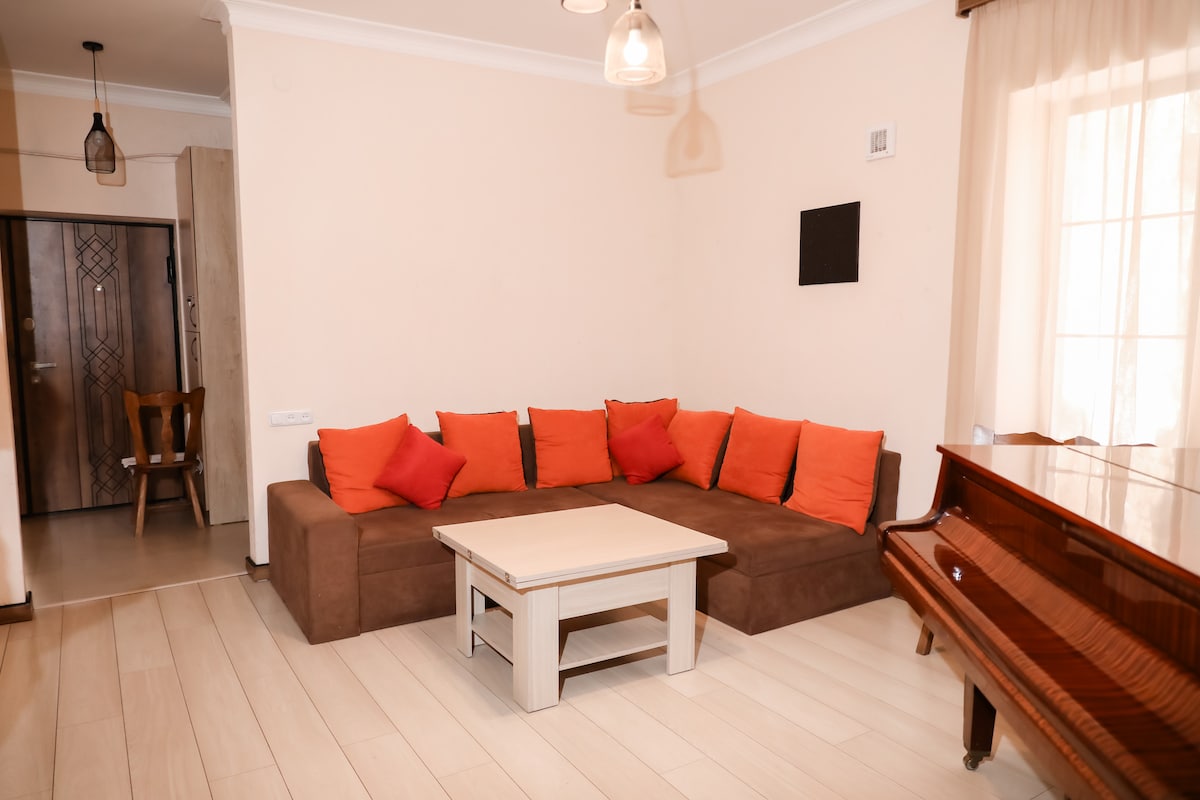 Остановитесь с семьей в самом центре, вблизи достопримечательностей.В жилом комплексе есть магазин со всеми товарами, необходимыми для ежедневного использования. Вы также можете насладиться отдыхом в обновленном лобби-баре здания. Также есть широкое игровое поле _ Есть все условия для организации приятного отдыха. ПС. Можно и на длительнее время При бронировании более 3-х дней будут скидки
