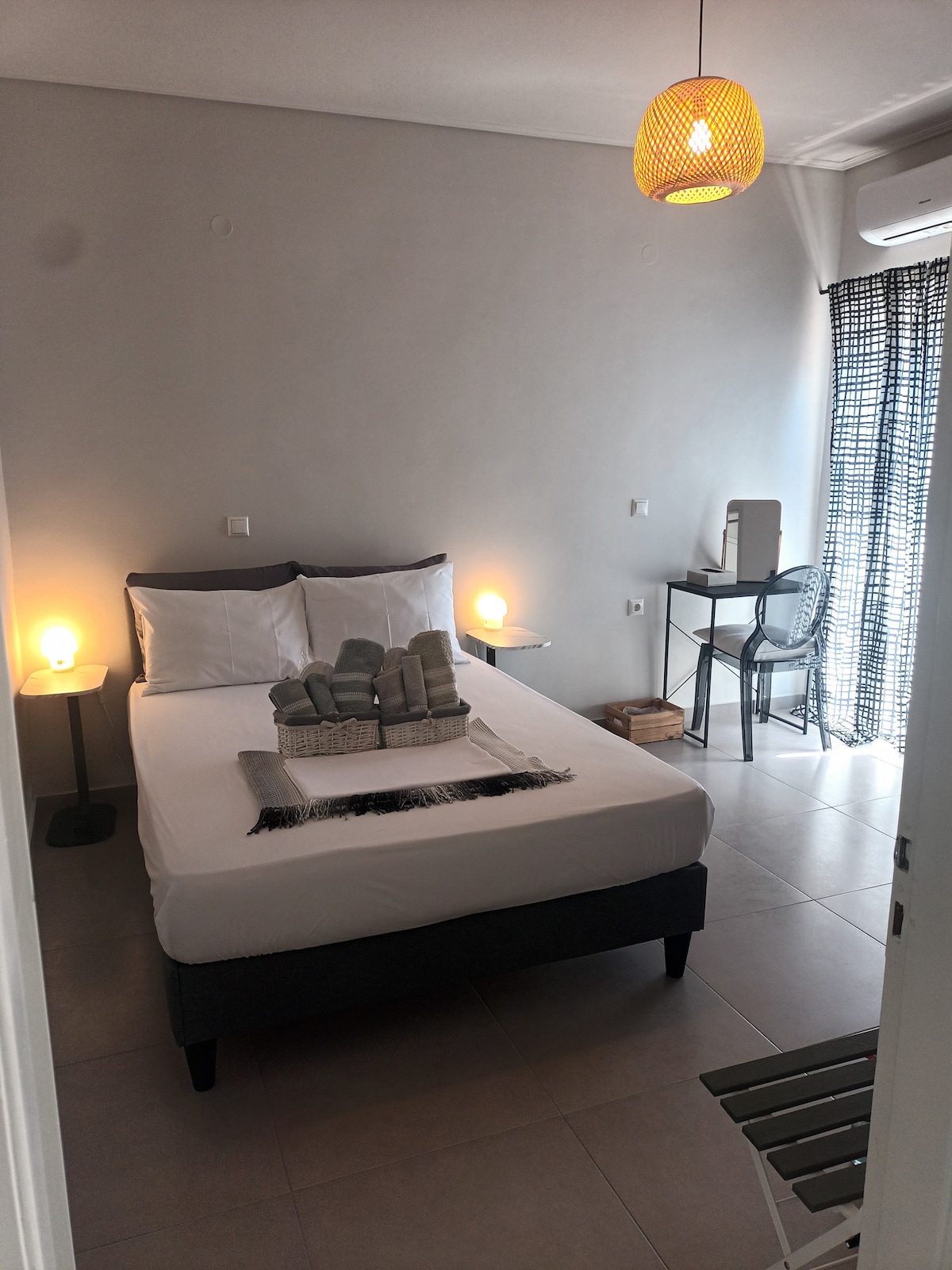 Ενας χώρος με ιδιαίτερο design που περιλαμβάνει κρεβάτι king size ,mini bar ,smart TV wi fi ,πιστολάκι μοντέρνο λειτουργικό μπάνιο δεν διαθέτει κουζίνα και δεν μπορεί να εξυπηρετήσει ανάγκες παρασκευής φαγητού. Βρίσκεται στο κέντρο της πόλης δυο λεπτά απ τον κεντρικό της πεζόδρομο με τα καφέ -μπαράκια και τα εμπορικά καταστήματα. Κατασκευάστηκε πριν από λίγες μέρες με τη μορφή Lux δωματίου ξενοδοχείου με ατομικό μπάνιο ..διαθέτει πόρτα ασφαλείας και είναι σε οικογενειακή πολυκατοικία.