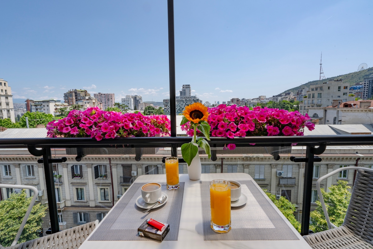 Step into modern comfort in the heart of Tbilisi, where city views and stylish design come together. This pristine space features a spacious bedroom, a sleek modern bathroom, and a private terrace with stunning views of the city — the perfect spot to enjoy your morning coffee or unwind in the evening. Perfect for solo travelers, couples, or business guests looking to experience Tbilisi in style and comfort. Enjoy the perfect blend of city life and luxury right at your doorstep!