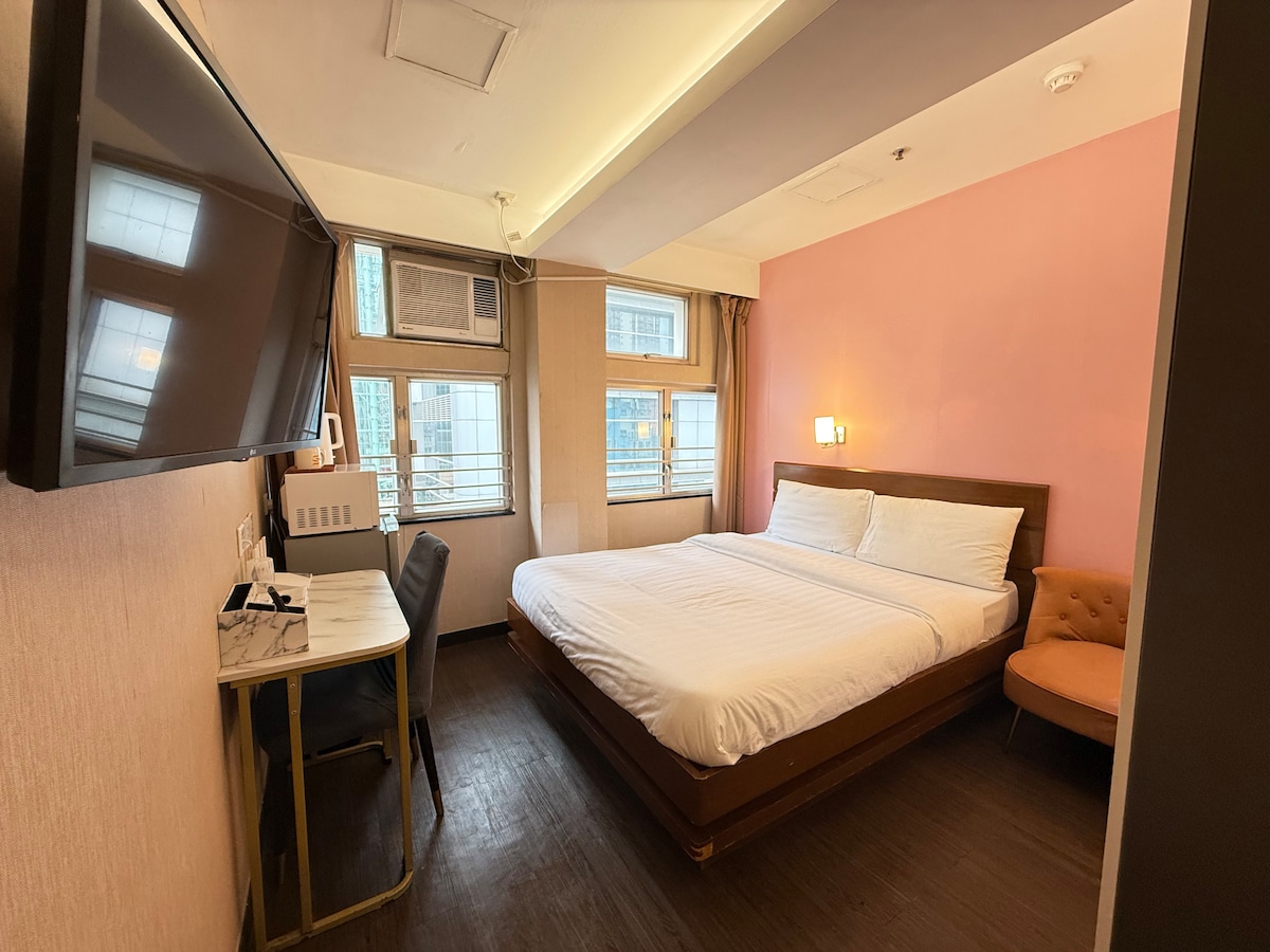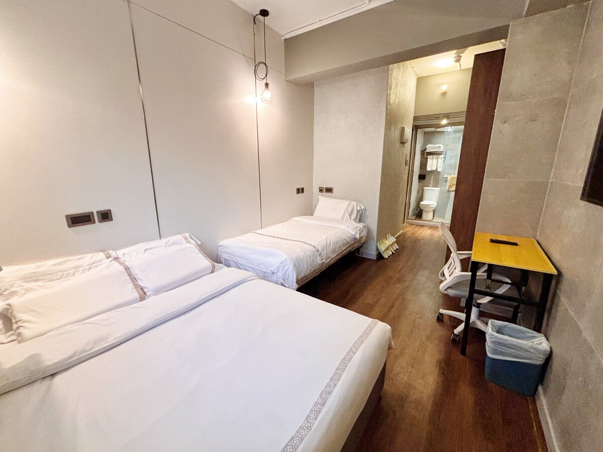 It is a cozy and comfortable room that can accommodate two people. The room is furnished with two single beds, and a study desk. There is a large window that lets in plenty of natural light. The en suite bathroom is equipped with a shower, toilet .This room is ideal for two friends or siblings traveling together who would like an affordable private space to stay.地點優越,前往熱門商店和餐廳非常便捷。