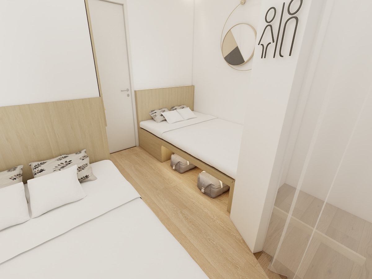 (1)溫馨的單人房,床是1.0x1.8米Single Size