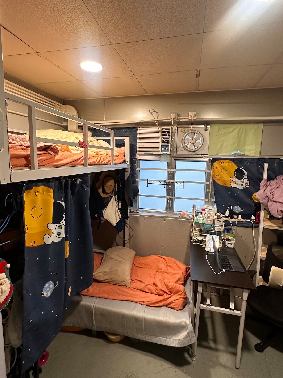 属于一房一厅房型,但是客厅用作为卧房,客厅配置一张1.2米床可睡2人+内房配置一张上下子母床可睡3人,内房可以加1张单人床位,共住5人。房间内其他配置也很齐全,空调、电视机、电热烧水壶、转换插头、吹风筒、高速免费无线wifi网络、24小时热水淋浴等等一一具备,免去你尽可能的麻烦;房间内更设有独立的卫生间,让您尽享私人空间; 房间内提供拖鞋