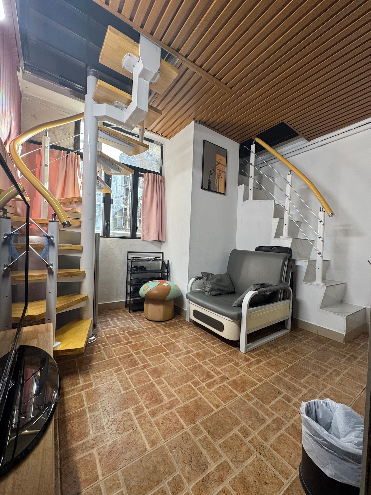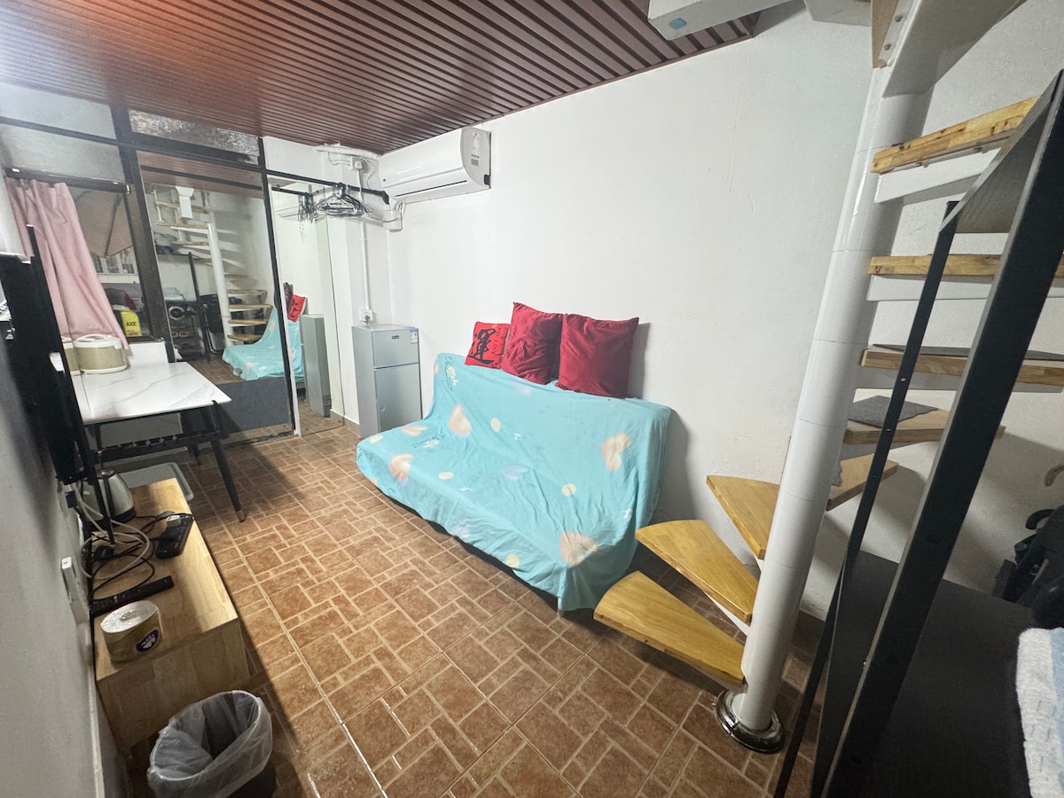 入住這間寬敞的獨特房源,整個團體都能有足以舒服休息的空間。 旺角站地鐵口,城市中心,地理位置優越,價格優惠,係休閒工作娛樂既最佳選擇!樓下大門平地電梯,適合年輕人,注意入住時間是15:00;離開時間是10:00;如果需要提早或延遲請與場主溝通獲取相應費用;2張1.2米的雙人床位於閣樓兩個房間,1張1.2米沙發床位於樓下大廳,廁所在大廳,麻煩及不愛乾淨,要求高的客人不適合。洗衣機及櫥櫃在露台。