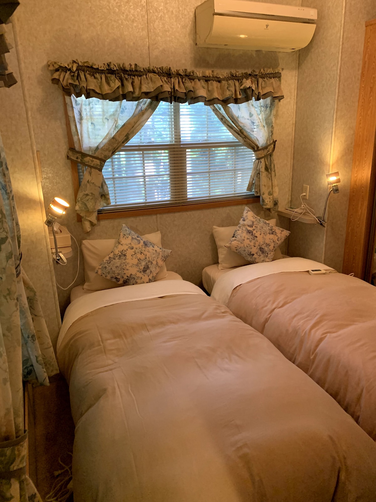 静かな小さなこじんまりとしたゲストハウスですデッキは6人くらいの人数でバーベキュー等出来るよう広く作られています。少し大人4人でのご宿泊は狭く感じられるかと思いますが御了承下さい。山林ですので虫等がおりますが、ゲストハウス内は虫除け駆除等念入りに行っております滞在中侵入してしまう場合はご了承願います。虫等苦手な方は少し抵抗があると思いますのでその上でのご予約お願い致します。冬季はこの辺りは氷点下に冷え込みます此方のゲストハウス内は主に灯油ストーブ灯油ファンヒーターの暖房設備です予めご了承ください。電化製品も常備してありますが使い過ぎると安全装置が働き(スマートメーター)家の中の電気が点滅したりしますので一度に沢山の電化製品は使わない様にお願い致します、漏電メーターも設備されております、電気が点滅等しましたら電気の使用を少なくしてご利用下さい(又、田舎暮らし移住体験など御相談くださいひと月単位での移住生活など) 新コロナウイルス感染症対策につきお客様の退室後の除菌清掃は万全を尽くしておりますお客様におかれましては入室前に玄関先にて検温記録ウイルス除去スプレーにて除菌して頂き入室して下さい