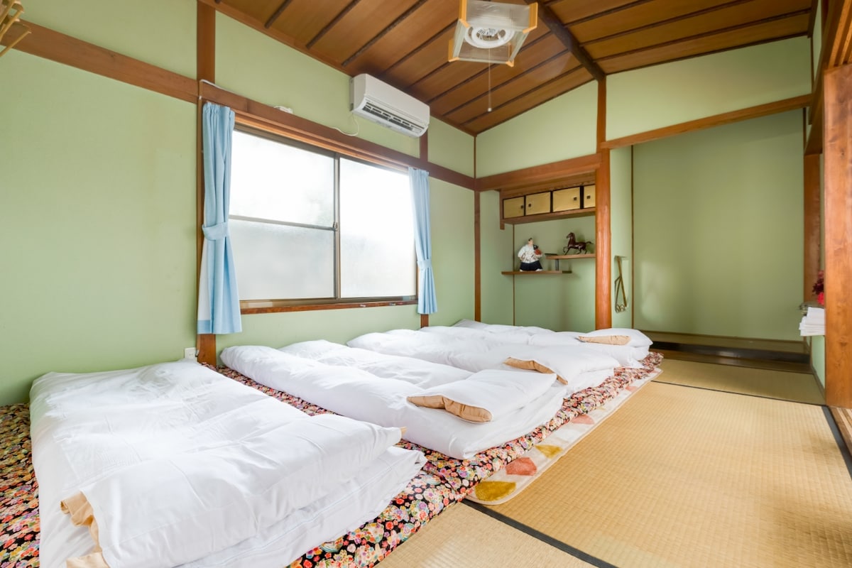 欢迎来到关西机场附近的百年日式古民宿 | 和憩馆(整栋出租・70㎡以上) 和憩馆是一座拥有 百年历史 的日式古民居,经过精心翻新,在保留日式建筑风格的同时,融入了现代生活的便利设施。最多可容纳 7名 住客,非常适合 家庭、朋友 旅行,无论 短期或长期入住,都能享受舒适的住宿体验。 地理位置 距离 关西国际机场 11km(泉佐野站 ↔ 关西机场站,电车首班 5:20 开始,深夜巴士每小时运行) 距离 りんくう奥特莱斯 3.2km 距离 南海泉佐野站 步行约10分钟(沿途有商业街、餐厅、药妆店等,购物出行方便) 设施与服务 免费Wi-Fi、电视、停车场(限高1,700mm以下) 2间卧室(最多可住7人) 装修后的厨房、浴室、卫生间(舒适又方便) 周边推荐 步行 约11分钟 可到 "青空市场",可以直接购买或现场品尝当天捕获的新鲜海鲜。 便利店、超市、面包店、药妆店、餐厅等生活设施齐全,适合长期住宿。 由于是百年古民家,楼梯较陡较窄,带小孩或老年人同行的客人请注意安全。 无论您是度假、商务出差,还是搭乘早班飞机或深夜抵达,都欢迎您选择和憩馆,感受百年古民居的魅力! 期待您的光临!
