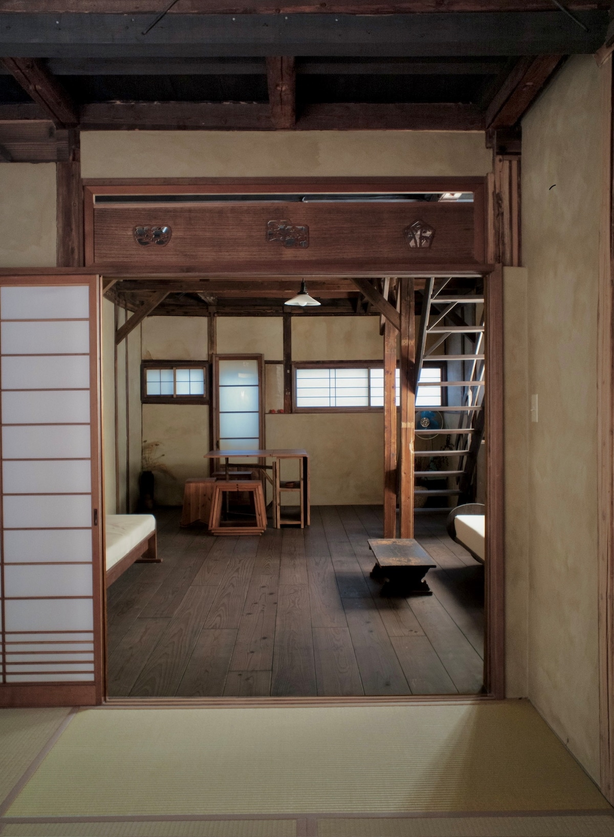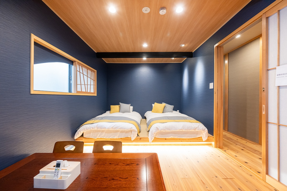 A two-story traditional Japanese house renovated by a famous designer with 4 bedrooms, 2 bathrooms, 2 toilets and 2 washrooms. JR Osaka loop line Momodani Sta is just a 5-min walk away. By train, 7 minutes to Namba and 45 minutes to KIX. Easy access to most sightseeing spots such as USJ, Umeda, Kyoto, Nara, Kobe. This area is close to all the major tourist areas but still distant from the crowds and noise, located in a quiet neighborhood.