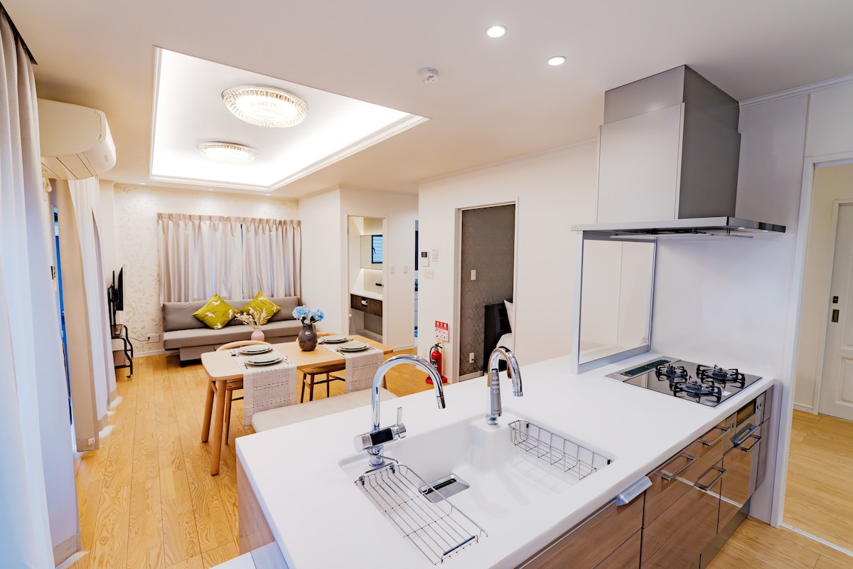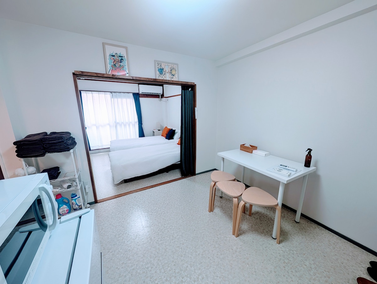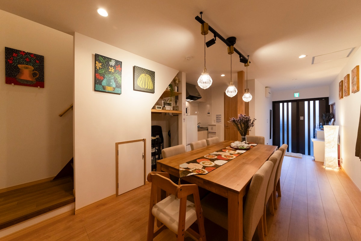 ★我们提供英语、中文和日语服务,欢迎随时联系我们。(^^) ★一楼有一间卧室。 此房源拥有一间浴室🛀、一间厨房、两个洗脸池,两个卫生间🚾,三间卧室,还有一间客厅,均经过全面翻新。 ★大阪市内最佳交通选择之一 交通便利,可搭乘三条线路:JR大阪环状线、近铁和地铁。可直达大阪站、难波、天王寺和奈良。鹤桥站距离酒店约450米,步行5~10分钟即可到达。 ★鹤桥的乐趣远胜其他地区。 从鹤桥站下车后,各种餐厅的美味香气扑鼻而来,迎接您的是热闹的鹤桥商店街,这里保留着昭和时代的复古氛围,是美食爱好者的天堂。这里人头攒动,聚集了众多知名餐厅,供应烤肉、烤鸡肉串、河豚、寿司和拉面。单是鹤桥一带,就足以让您流连忘返一整天。 ★步行1分钟即可到达罗森便利店,步行2分钟即可到达温泉设施。在大阪游玩一天后,何不带家人朋友前往天然温泉“延羽之汤”呢?距离本房源仅2分钟步行路程。