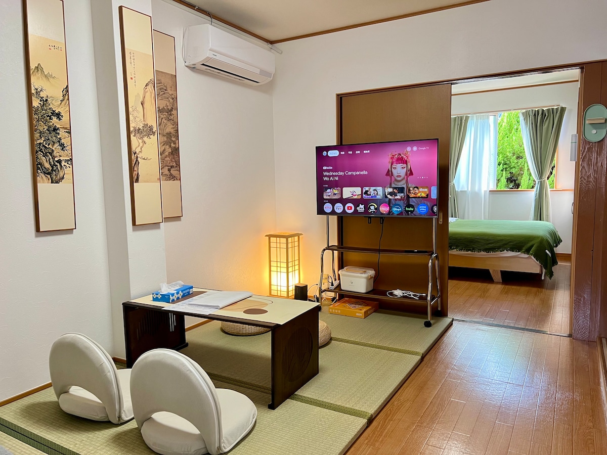 Hi,很荣幸您能够浏览到我的民宿。欢迎入住这间兼具日式风情与现代舒适的30㎡温馨公寓。房源位于大阪市東成区鹤桥车站的一栋公寓的2楼,步行7分钟即可到达车站(鹤桥地铁站/鹤桥JR站/鹤桥电车站。周边有超市、便利店、商店街、日式和韩国餐厅及交通站点,轻松前往景点。靠近“延羽的汤”游玩一天泡个汤赶走一天的疲惫。 房源亮点 • 日式客厅:榻榻米地板、低矮茶几和坐垫,搭配传统挂画,让您体验地道的日式氛围。 • 舒适卧室:榻榻米垫子和一张柔软的双人床,绿色床品与自然窗景相映,安静惬意,保证您一夜好眠。 • 现代设施:配备空调、高清电视、高速Wi-Fi,既有传统韵味,也不缺便利。 入住提示 • 公寓空间约30㎡,温馨紧凑,适合2~4人入住 • 房源在2楼,没有电梯,需要走楼梯到2楼,携带件大件行李的客人不太友好。 • 房源靠近马路,卧室在马路背面但仍会有些许噪音。马桶间小而紧凑。 如果您入住我的房源,对于这些缺陷首先非常感谢您的包容,我会尽最大的努力去接待每一位客人,并尽量满足您的需求。欢迎您携全家人入住这处美妙房源,享受充裕空间和精彩活动,希望能为您大阪之旅带来难忘的回忆。