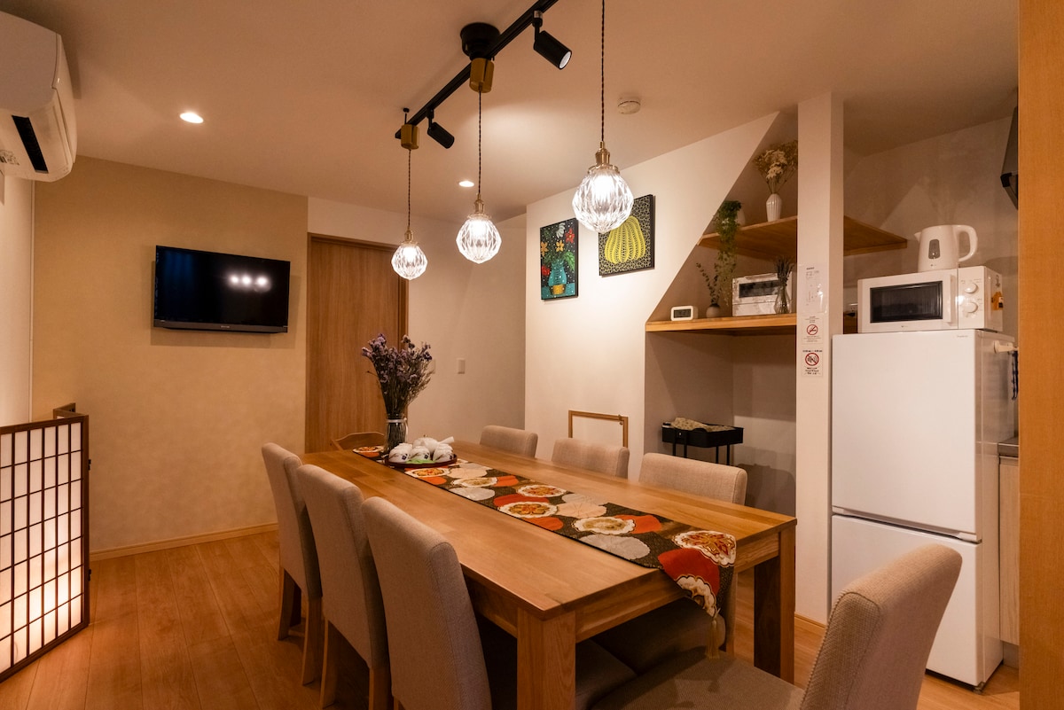★我们提供英语、中文和日语服务,欢迎随时联系我们。(^^) ★一楼有一间卧室。 此房源拥有一间浴室🛀、一间厨房、两个洗脸池,两个卫生间🚾,三间卧室,还有一间客厅,均经过全面翻新。 ★大阪市内最佳交通选择之一 交通便利,可搭乘三条线路:JR大阪环状线、近铁和地铁。可直达大阪站、难波、天王寺和奈良。鹤桥站距离酒店约450米,步行5~10分钟即可到达。 ★鹤桥的乐趣远胜其他地区。 从鹤桥站下车后,各种餐厅的美味香气扑鼻而来,迎接您的是热闹的鹤桥商店街,这里保留着昭和时代的复古氛围,是美食爱好者的天堂。这里人头攒动,聚集了众多知名餐厅,供应烤肉、烤鸡肉串、河豚、寿司和拉面。单是鹤桥一带,就足以让您流连忘返一整天。 ★步行1分钟即可到达罗森便利店,步行2分钟即可到达温泉设施。在大阪游玩一天后,何不带家人朋友前往天然温泉“延羽之汤”呢?距离本房源仅2分钟步行路程。