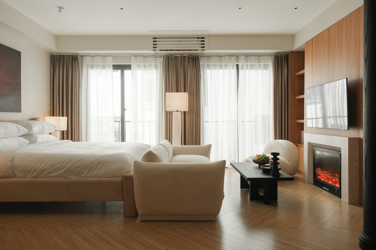 Gerbera The Montclair – Signature Studio with Balcony | Crafted Luxury Living Boutique studio next to Hanoi Old Quarter & Truc Bach Lake. Enjoy natural light, private balcony, and full amenities for short or long stays. In-building café with daily fresh bakery, rooftop terrace with garden & sunset view, and 24/7 security.