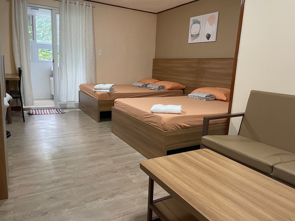 A little shy of 50 sq meters , this modern industrial one bedroom condo with balcony is very spacious to accommodate up to 6 persons comfortably. It is located in the heart of Baguio City. Walking distance to Session Road, City Market, Burnham Park, supermarkets, restaurants, hospitals and malls. Easily accessible by public transportation. Pay parking available. 24/7 reception staff and security personnel. CCTV in common areas. Baguio Visita accredited.