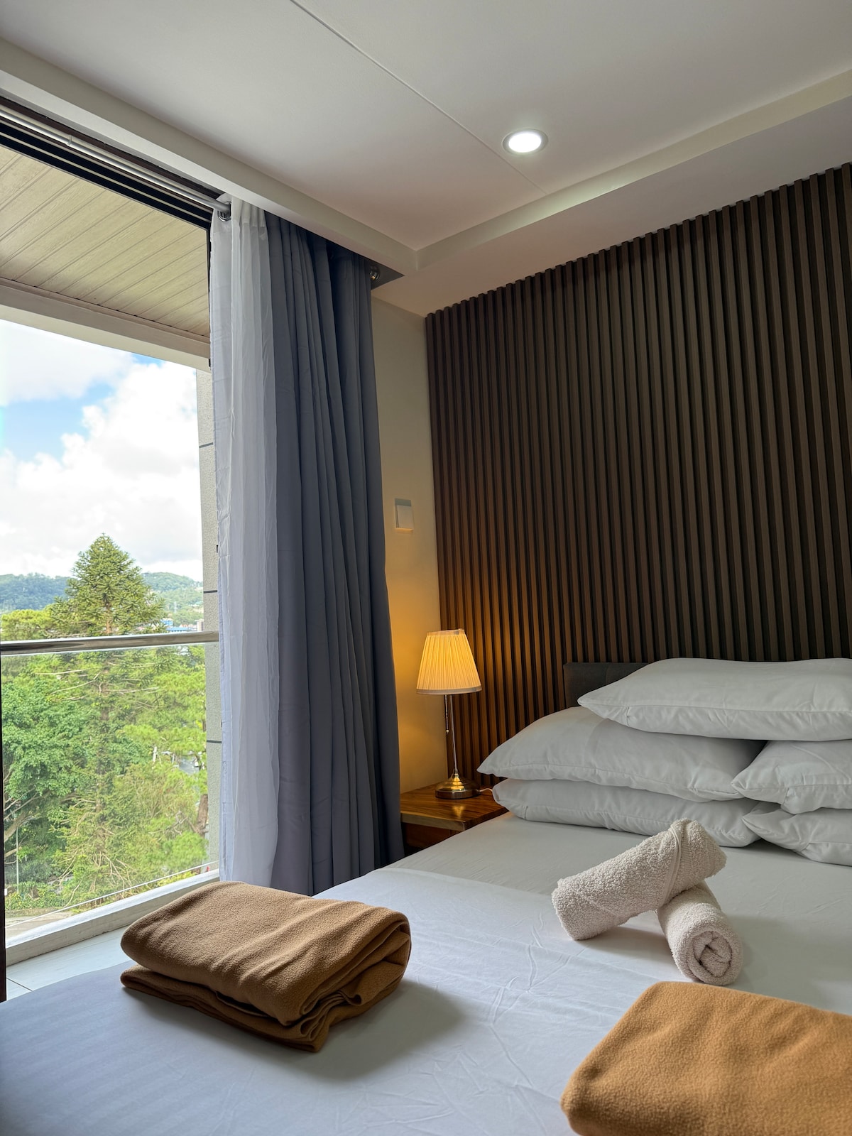 A modern loft style studio perfect for small families or group of friends. This unit has a balcony which faces the garden/playground area. It is located in Summerpines Residences, Aspiras Palispis (Marcos) Hiway just a kilometer away from the main city center. Paid secured PARKING for ONE vehicle. Induction cooker, microwave oven, refrigerator, rice cooker, electric kettle and dining utensils are provided. In house restaurants, convenience store within the building. Page; Eight Pillows Baguio