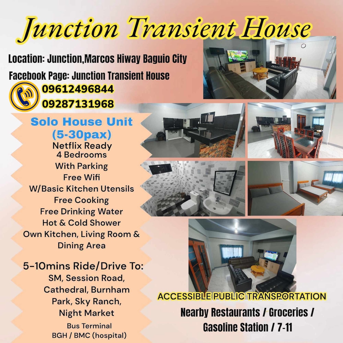 •1st room (2 pax) w Bathroom w Double Bed •2nd room (4 pax) w 2 Double bed •2 Bathrooms •Good for 6pax, 7-10 500head •W Towels •1 E-fan each room •Wifi •Bathroom w h/c Shower w Bidet •Living Room with Tv •Kitchen w cooking utensils •W Ref & Microwave •Roadside Building •Near Talipapa •Daanan ng Jeep & Taxi 🏠-🚘 5min Burnham Park 8min Sm 8min Camp John Hay 9min Botanical Garden 13min Mirrador Eco Park 15min Mines View Park 15min Stone Kingdom