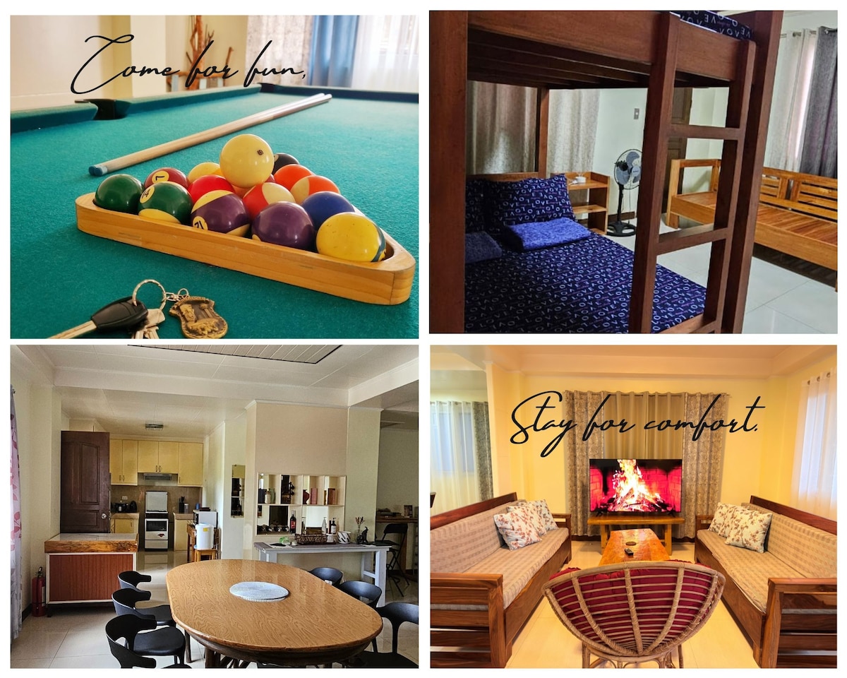 1. Our house has 3 bedrooms, 3 restrooms and 2 baths with builtin shower heaters. 2. Available amenities- tv, ref, cooking and eating utensils, iron, electric fans, microwave, water dispenser, barbque grill etc. 3.Very fast WIFI- you will enjoy watching online movies,youtube and of course NETFLIX thru our 50 inches HD samsung smart tv. 4. Located in Ciudad Grande, Bakakeng, BC- around 4kms away or about15 mins drive from Burnham/SM