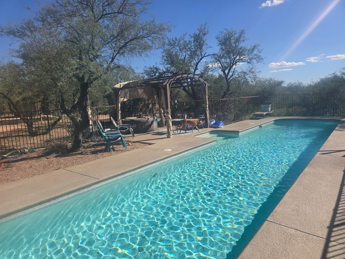 A true Oasis with Private pool, hot spa, grill, outdoor fire pits and indoor wood fireplace. 10 mins drive to shopping center, golf courses, movie theater, restaurants and casino. View of Madera Canyon. 20 mins from airport and Tucson. 30 mins from Tubac. Great for relaxing or entertaining small groups. Perfect for couples, solo adventurers, business travelers and families. Bright and open floor plan with solid brick masonry construction. Walking distance from Anamax Park.