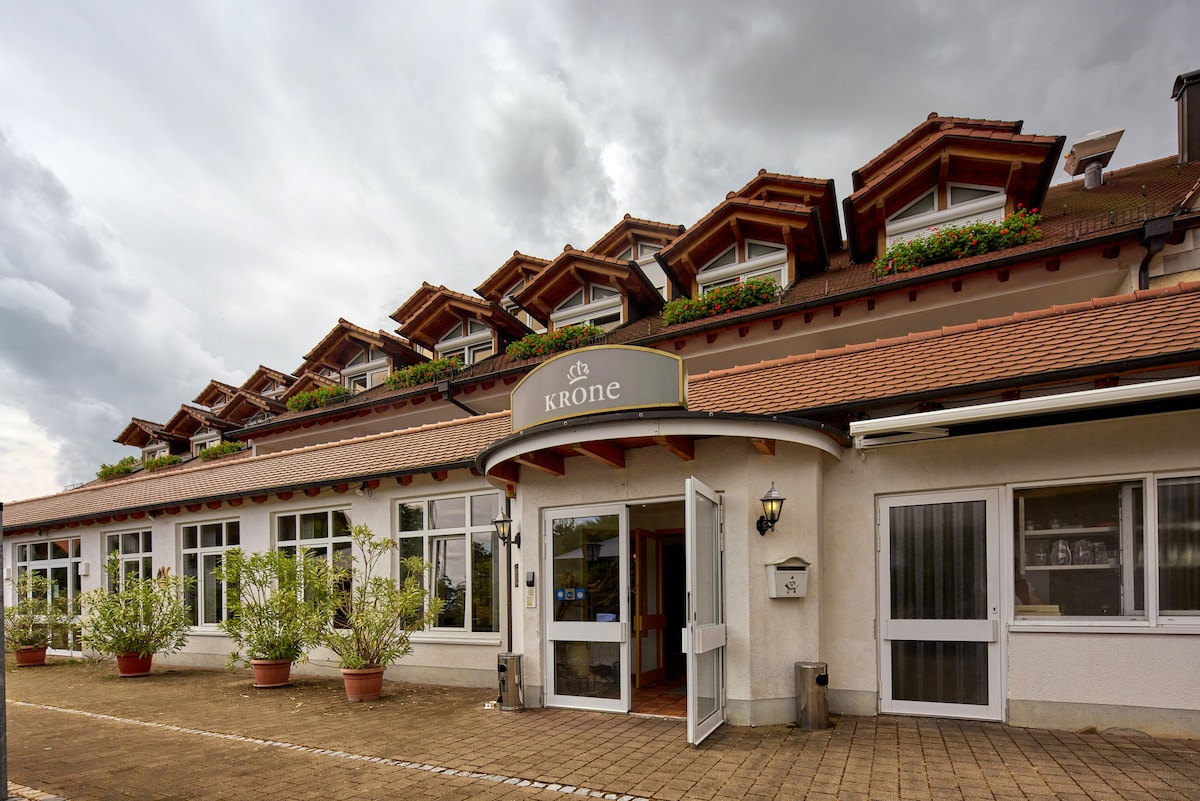 In dieser charmanten und gehobenen Unterkunft wurden keine Details übersehen.Dieses familiengeführte Hotel erwartet Sie in idyllischer Lage im ländlichen Deggenhausertal und bietet Ihnen einen ungestörten Aufenthalt, nur 10 km vom schönen Bodensee entfernt. Die komfortablen Zimmer des Landhotel Krone sind ein idealer Ort zum Entspannen und bieten einen herrlichen Blick auf die umliegende Landschaft.