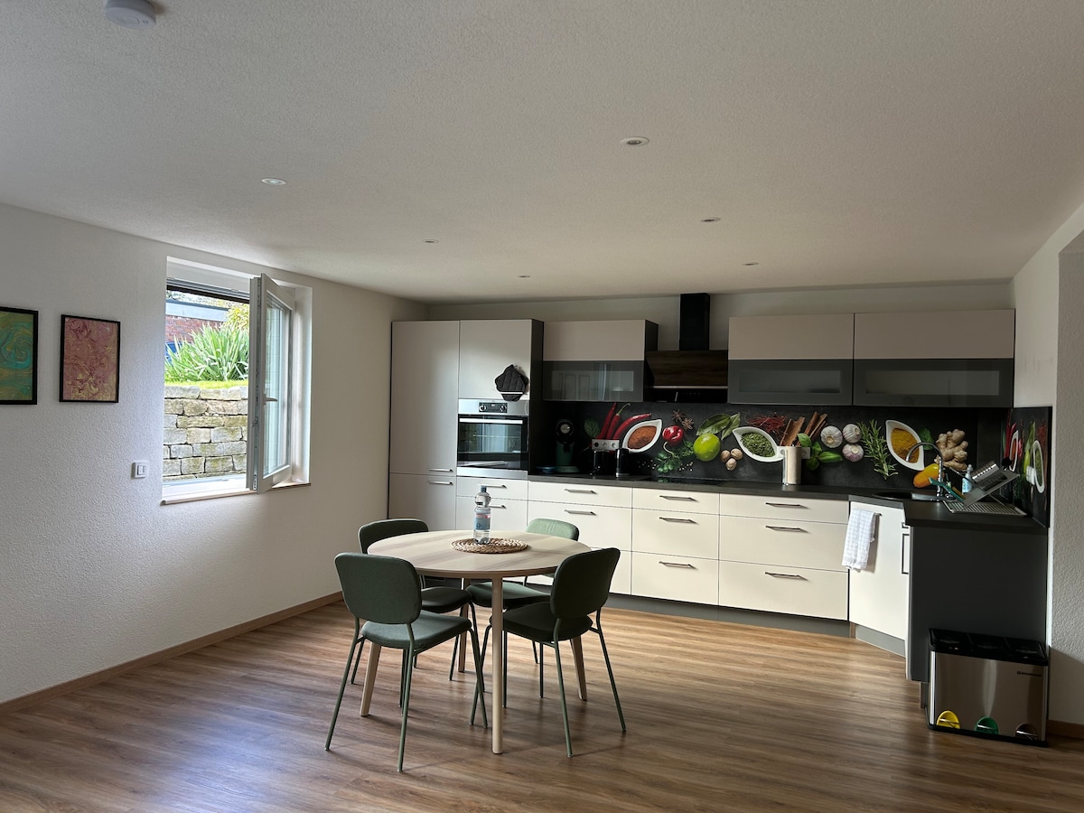 Sie wohnen gemütlich und authentisch auf 24qm in unserem "Bauernstüble". Im Wohnraum befindet sich eine Essecke, ein Kleiderschrank, Sofa und Satelliten-TV. Über eine Treppenleiter gelangen Sie in den Schlafbereich mit einer 140x200cm Matratze. Angrenzend zum Eingangsbereich befindet sich eine kleine aber vollwertig ausgestattete Küche. Ein modernes Badezimmer mit Fußbodenheizung und Tageslicht rundet die Wohnung ab. Eine Waschmaschine + Trockner kann für 4€ pro Waschladung mitbenutzt werden.