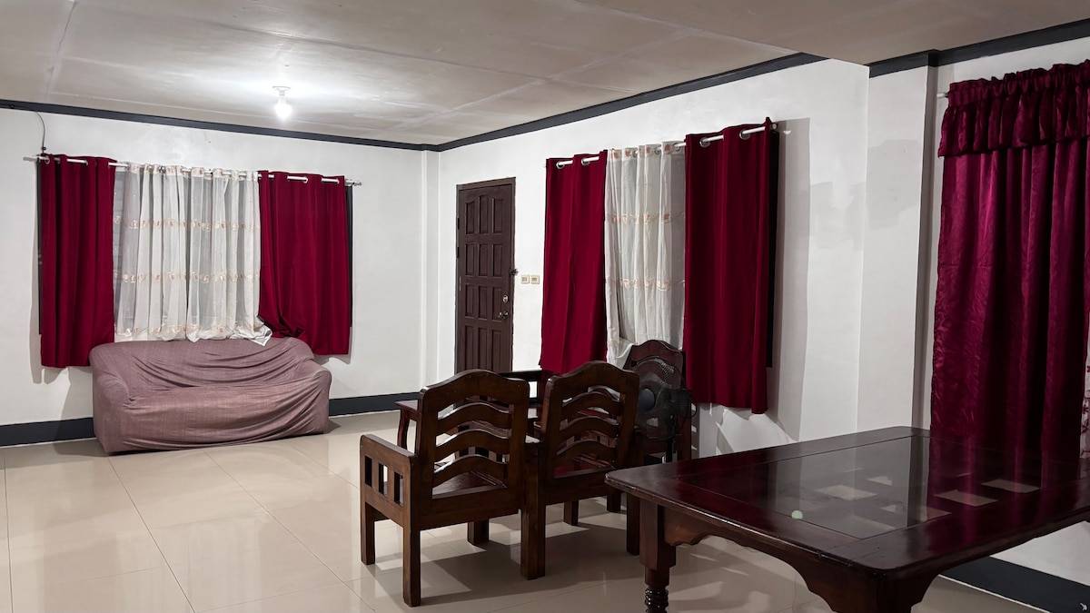A really a very typical filipino house, with large living room and a total of around 100 square meters of living area, a complete house with a fast pldt fiber 500mbit internet and stable connection, a large 70 inch smart tv, a fully equipped kitchen including induction cooking field and microwave, utensils and fridge. 2 airconditioned bedrooms. Parking space for 1 car. If in case you need a car, you can rent a brand new pickup including driver on a daily basis - no self drive. Great for families