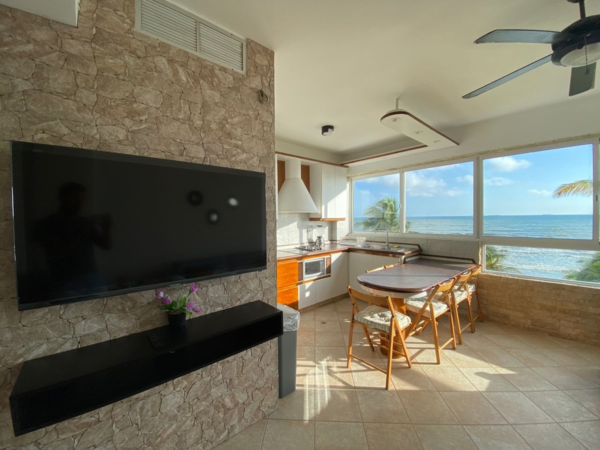 No Airbnb Fees: What You See Is What You Pay! 🌊 Relax with ocean views! Enjoy 2 bedrooms: one with a king-size bed and other with a bunk bed and a pullout single bed. The space features 2 bathrooms with hot water, an equipped kitchen, Wi-Fi, TV, and 3 air conditioners. The gated community includes a swimming pool, BBQ areas, direct beach access, and private parking. Safe and secure, with a power generator available on weekends and holidays. 📅 Book now and enjoy an unforgettable getaway! 💙