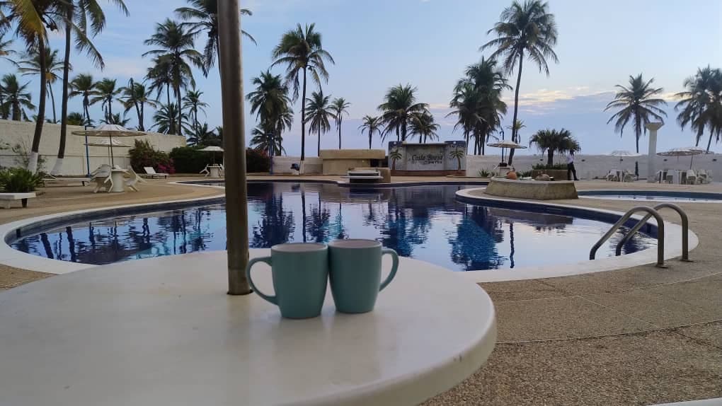 Apartamento en Conjunto Cocotero Mar II Capacidad: 6 personas (1 cama matrimonial + 4 sofá camas). Cuenta con 2 baños, cocina equipada (nevera, microondas, horno, licuadora, cafetera, etc.), aire acondicionado central, WiFi, 2 TVs con Netflix y Alexa. Pozo de agua y calentador de agua eléctrico. Conjunto: Disfruta de piscina, jacuzzi, parque infantil, parrilleras y acceso directo a la playa. Seguridad 24/7. 1/P Estacionamiento. Brazalete de $5 por persona Check-in: 2 p.m., Check-out: 12 p.m.