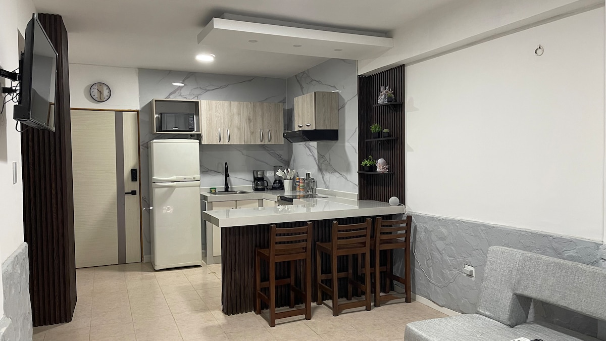 Te va a encantar nuestra propiedad debido a el espacio acogedor, los techos altos, las vistas, la ubicación y la gente. Mi alojamiento es bueno para parejas, aventureros, viajeros de negocios y familias (con hijos). Apartamentos equipados con servicio de lenceria en camas, cocina equipada con todos los utensilios básicos licuadora, cafetera eléctrica, microondas. Tv con señal movistar en habitaciones.