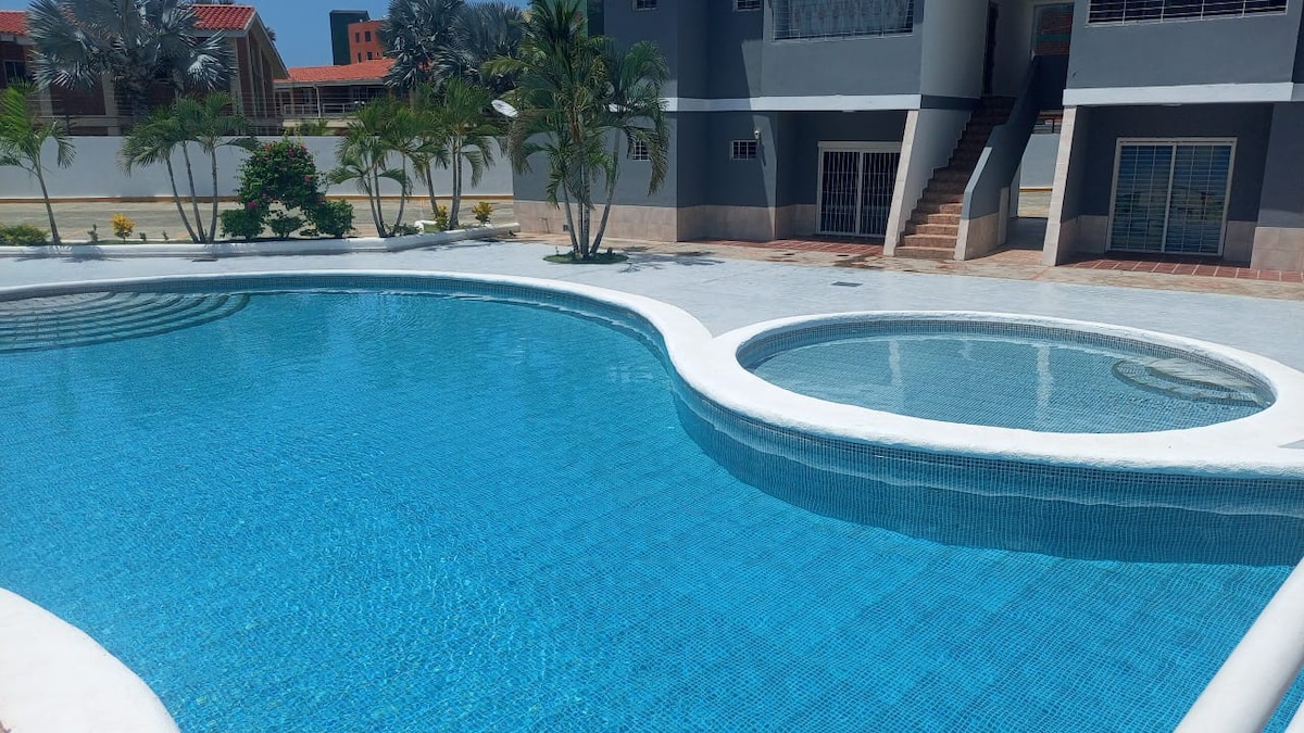 Hermoso apartamento frente a la playa con acceso a la misma, ideal para disfrutar con la familia y amigos. A 15min en carro del centro donde se encuentra el area comercial y los muelles a los cayos. Totalmente equipado , cuenta con piscina, jacuzzi ( no tiene precio adicional ) wifi, aire acondicionado , planta electrica para areas comunes, pozo de agua, estacionamiento privado y vigilancia las 24h del dia.