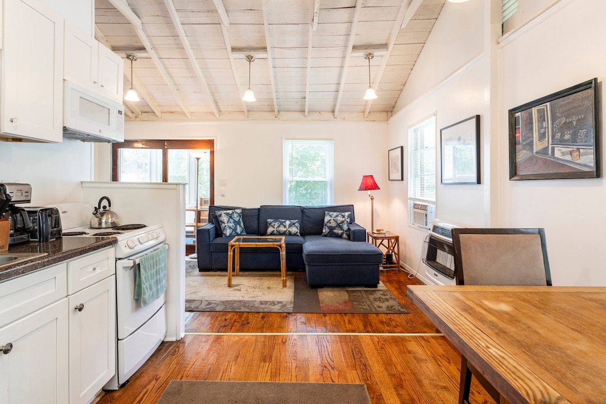 4 bedroom bungalow near historic Cold Spring Village & Brewery and Cape May Winery. Lovingly restored home with architectural charm, updated bathrooms and large open kitchen and living/dining area. Located within 3 miles of Cape May beaches. Washer/dryer, sunporch, deck, den/office and plentiful onsite parking. Back of 1.3 acre property provides private access to Cold Spring Bike Path with an outdoor shower and firepit.