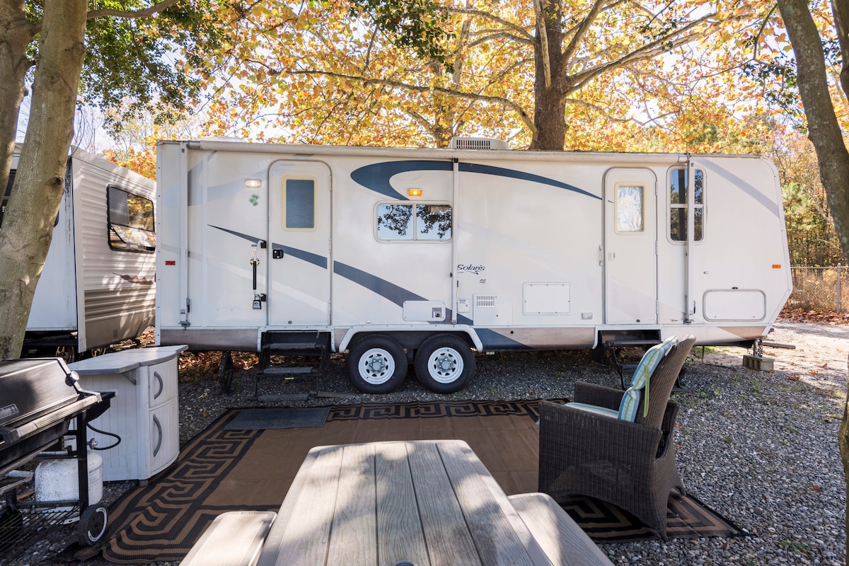 ** New & Improved Site For 2025! Welcome to the Crooked Arrow Camper! Spend a few nights in this gorgeous RV located in Lancaster County. This fully stocked RV is nestled in the woods and it offers a place to unwind & disconnect from everyday life. Spend your morning sipping a fresh cup of coffee listening to the birds sing or make your breakfast extra delicious by cooking it over the fire. Enjoy a relaxing evening around the fire pit listening to all the sounds nature has to offer.