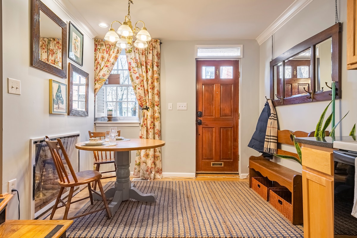 Located on picturesque Tyson St, Peggy's place is an historic rowhome in the heart of Baltimore's cultural district. Everything is here in this cozy home away- with a full amenity kitchen, office/workout room with printer and stationary bike and a 3rd floor balcony. Upper floors have one full bath each, with tub on the 2nd floor. Both rooms- 2nd floor full, 3rd floor queen - have a dresser and closet. Steps from major destinations - cultural, medical and transit. You'll love it here!