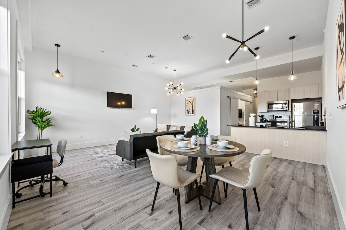 This modern Loft features 1 King-Size bed, 1 Bedroom, 1.5 Bathrooms, a 55" TV in the Living Room, & 50" TV in the bedroom with Washer & Dryer. Just a 3-minute drive to the Convention Center, Chinatown, Reading Terminal Market, shopping malls, bars, restaurants, and lounges, this stylish apartment is the perfect retreat after a day of exploring Philadelphia’s top attractions.