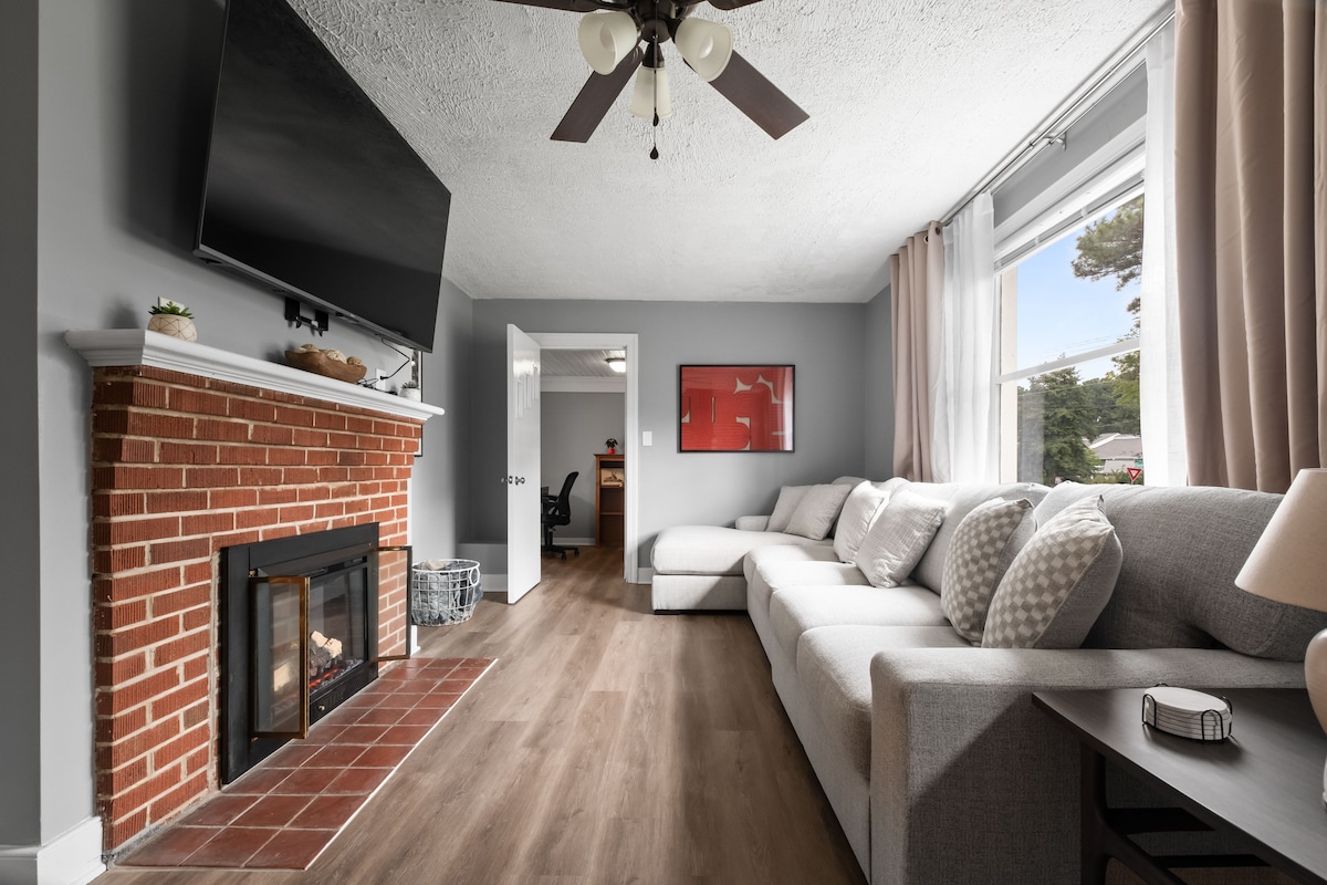 Enjoy a one of a kind historic experience at this centrally-located home near the Carver Industrial Historic District of Richmond! Centrally located, directly across from the Seigel Center, this 120+ year old property has been completely renovated including a new kitchen (w/ stainless steel appliances and quartz countertops), bathroom, & tile floors throughout! It is fully furnished and designed to stay true to it's historic roots while being upgraded with modern twists for a one of a kind stay!
