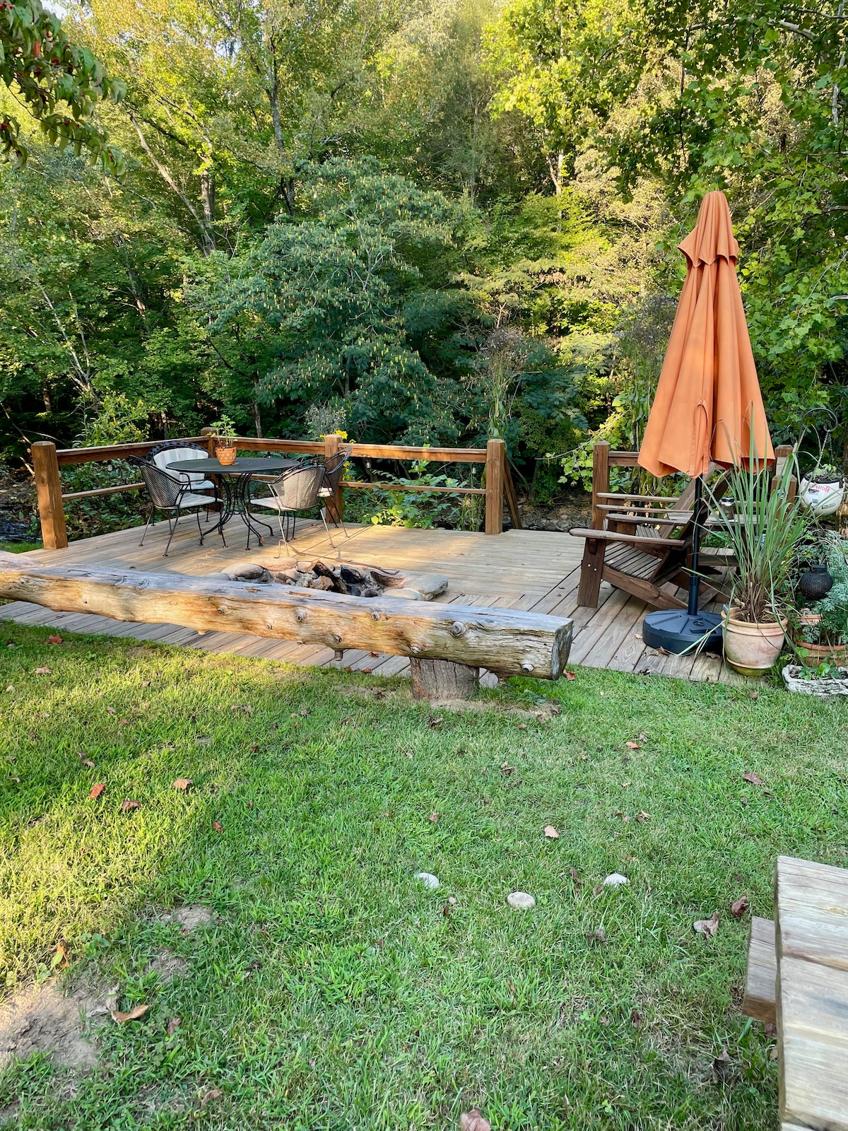 1 acre of private-peaceful bliss! New 65 in tv, linens, kitchen stock, washer/dryer, coffee pot, coffee, tea. Lots of towels, tons/pillows, throws/blankets ,Shampoo, conditioner, soap, jacuzzi, hot tub, covered porch, deck , fire pit, and so much more! You won’t have to leave! groceries delivered! Close to winery, coffee house, restaurants, you can walk , but feel like you are alone!! Cades Cove, Mountains within minutes! Biking trails, hiking, rafting and kayaking! Discounts, yes