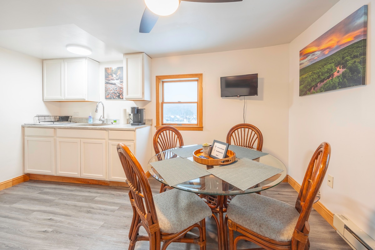 Welcome to our cozy one bedroom condo in the mountains of West Virginia! Perfect for hiking and skiing getaways. Just minutes from Dolly Sods Wilderness Area and steps from the slopes at Timberline, our condo features a fully equipped kitchen, comfortable bedroom with queen bed, & stunning wilderness views from a private back deck. Book your stay today and experience the beauty of West Virginia's mountains!
