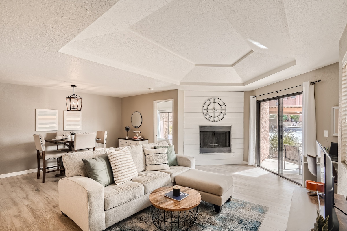 Our beautiful adobe pool house is a Tucson gem. Comfortable queen bed, fireplace, and stylish modern furnishings with large windows looking out to trees and sparkling pool. Vaulted ceilings and natural light make for a restful space. Located in historic Jefferson Park, it’s a midtown oasis close to the UofA and two blocks from the UMC/Banner Medical Center. Midtown/University location allows for convenient access to all of Tucson. *Newly improved high speed WiFi 11/1/2021