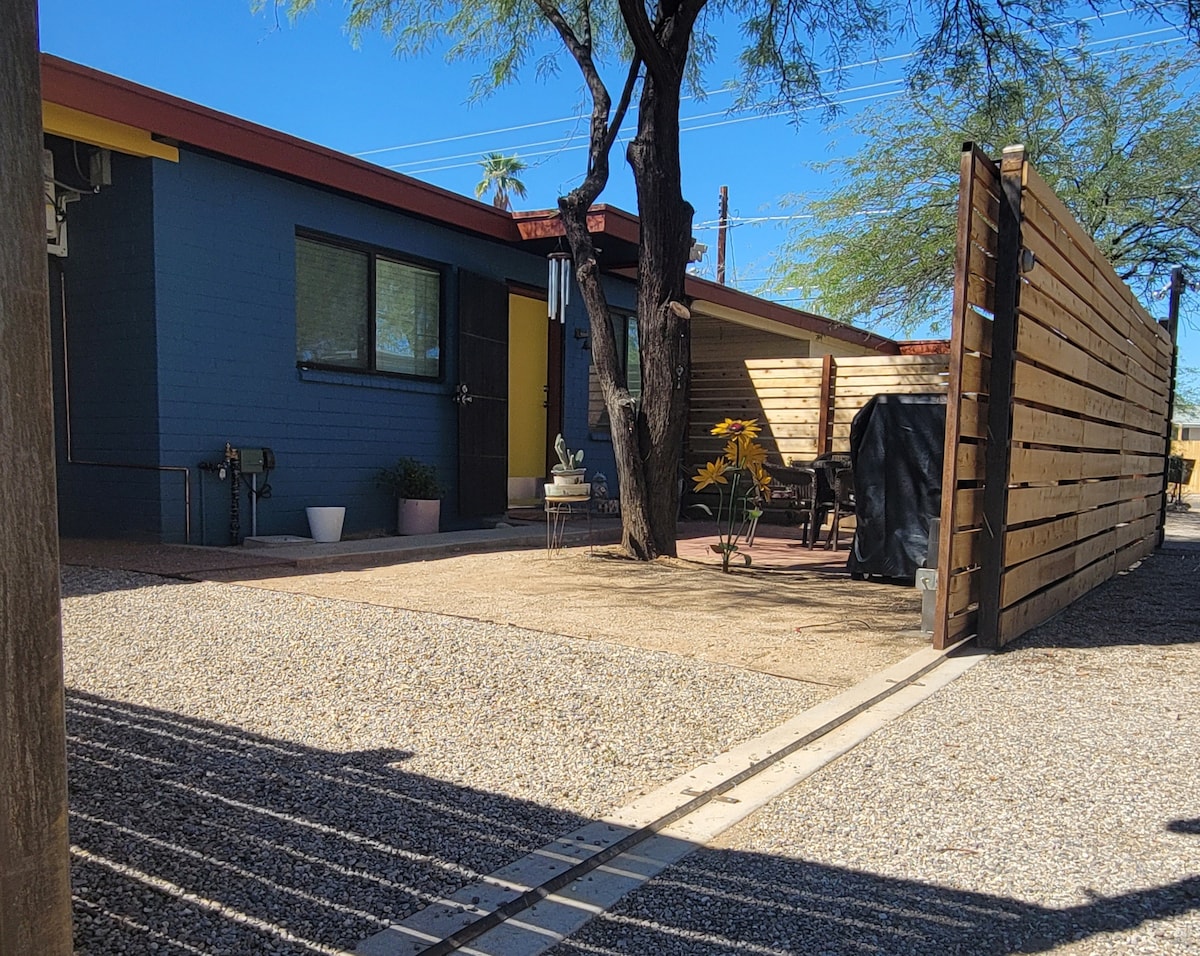 Our beautiful adobe pool house is a Tucson gem. Comfortable queen bed, fireplace, and stylish modern furnishings with large windows looking out to trees and sparkling pool. Vaulted ceilings and natural light make for a restful space. Located in historic Jefferson Park, it’s a midtown oasis close to the UofA and two blocks from the UMC/Banner Medical Center. Midtown/University location allows for convenient access to all of Tucson. *Newly improved high speed WiFi 11/1/2021