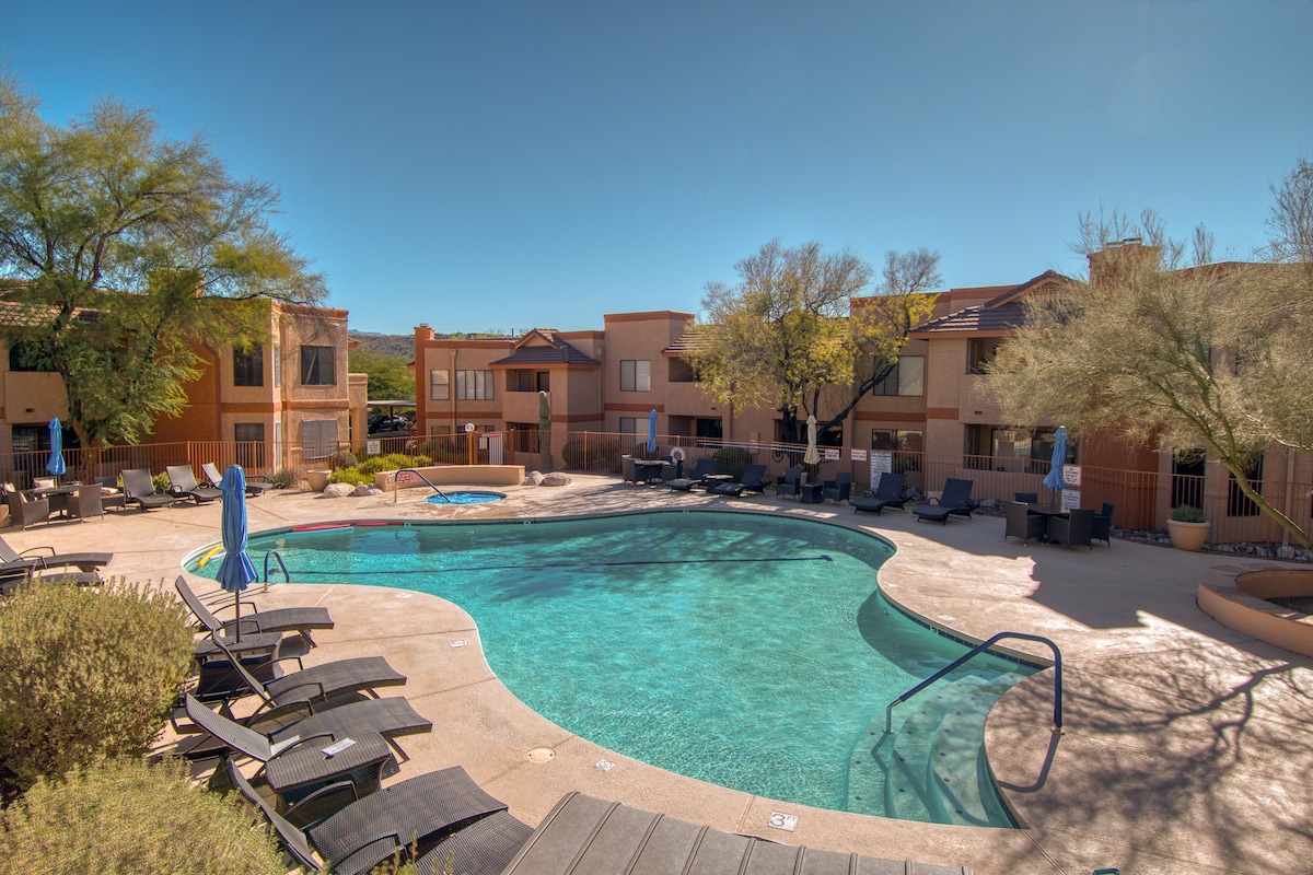 This modern designed 2 bd/2 bath condo is the perfect escape whether you're on vacation or working. Nestled in the peaceful Catalina Foothills, this top floor condo is perfectly positioned with stunning views of the foothills right from your back balcony. There is also a community pool & gym steps from your front door! At The Desert Hideaway you will be right next some of the best hiking trails in Tucson. You will also be walking distance to some of the top restaurants, bars, and stores.