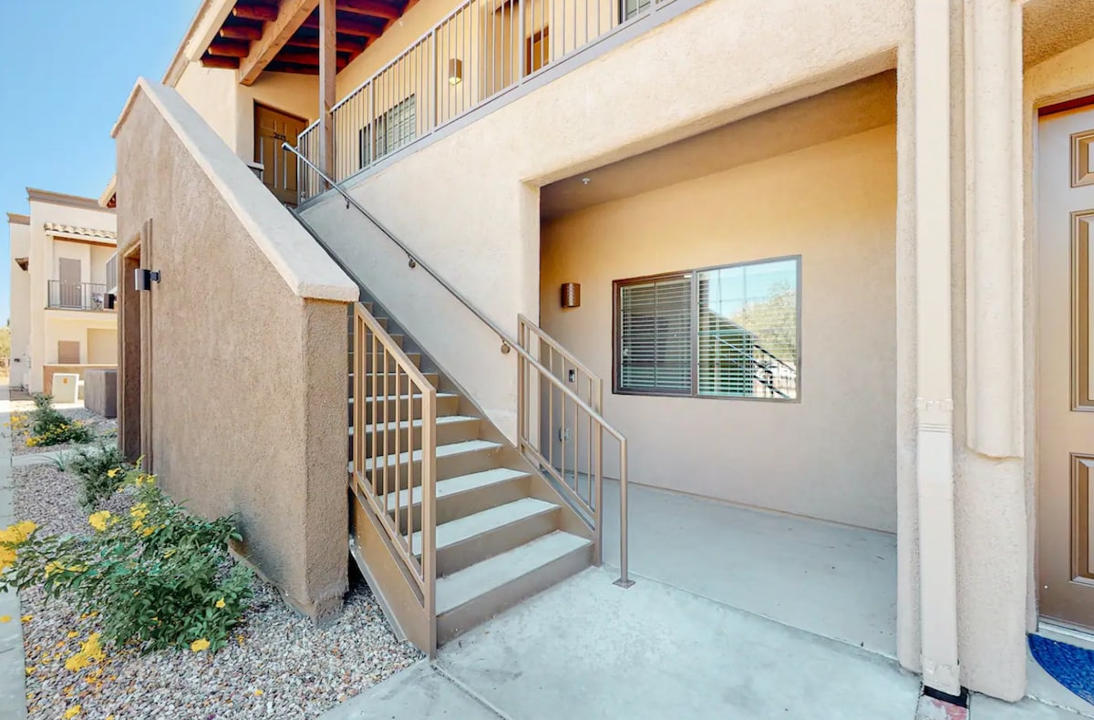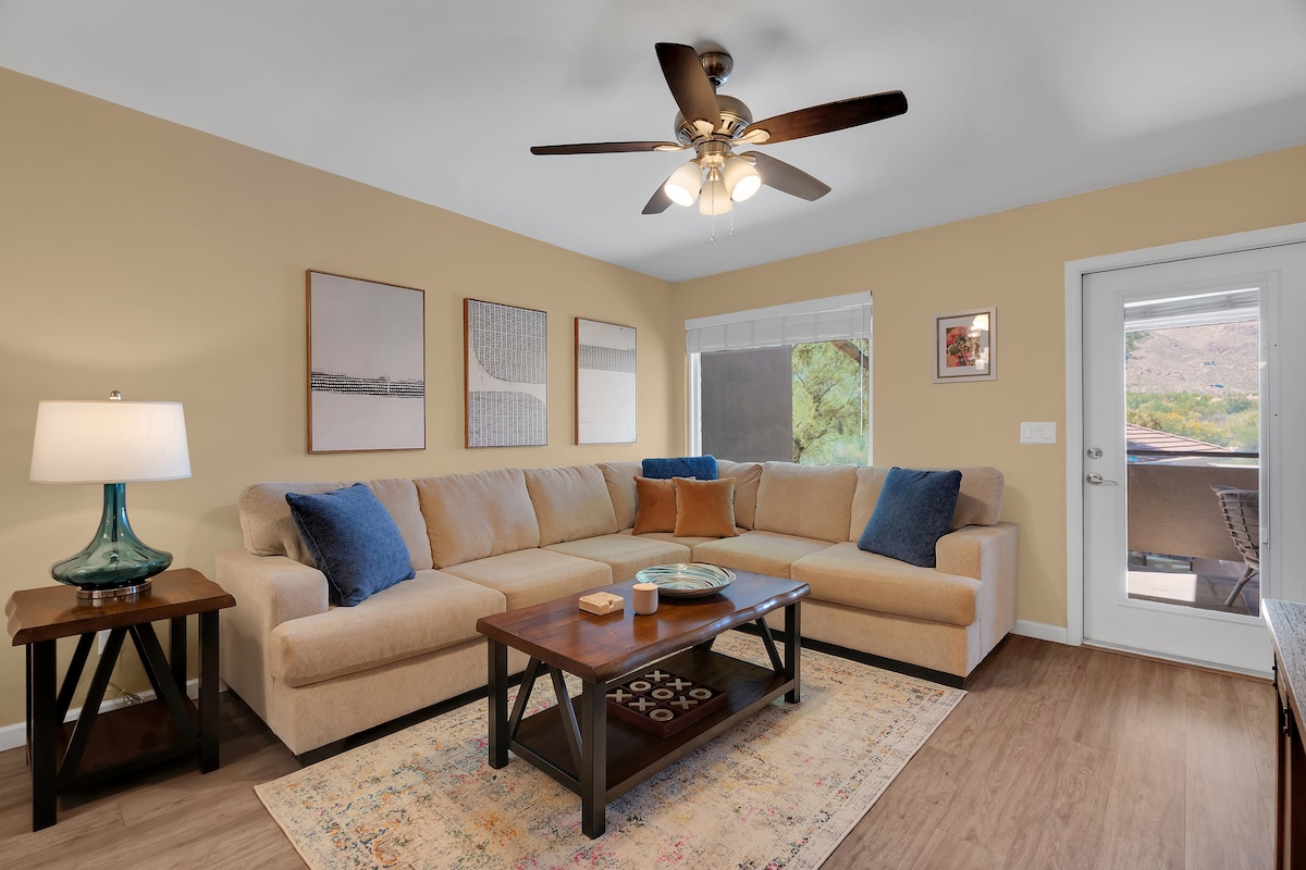 This newly renovated and carefully furnished condo is perfectly located as a launch pad for Sabino Canyon, Mt Lemmon Hwy and the Catalina Mountains, or Saguaro National Park (East). Enjoy your own private patio and access to a pool and hot tub. We provide all new appliances, Disney+, Hulu, HBO, a washer and dryer, memory foam King bed, down duvets, and 100% cotton sheets. Adjacent to Udall Park and Recreation Centre, lap pool, gym, pickleball and much more! Safe area!