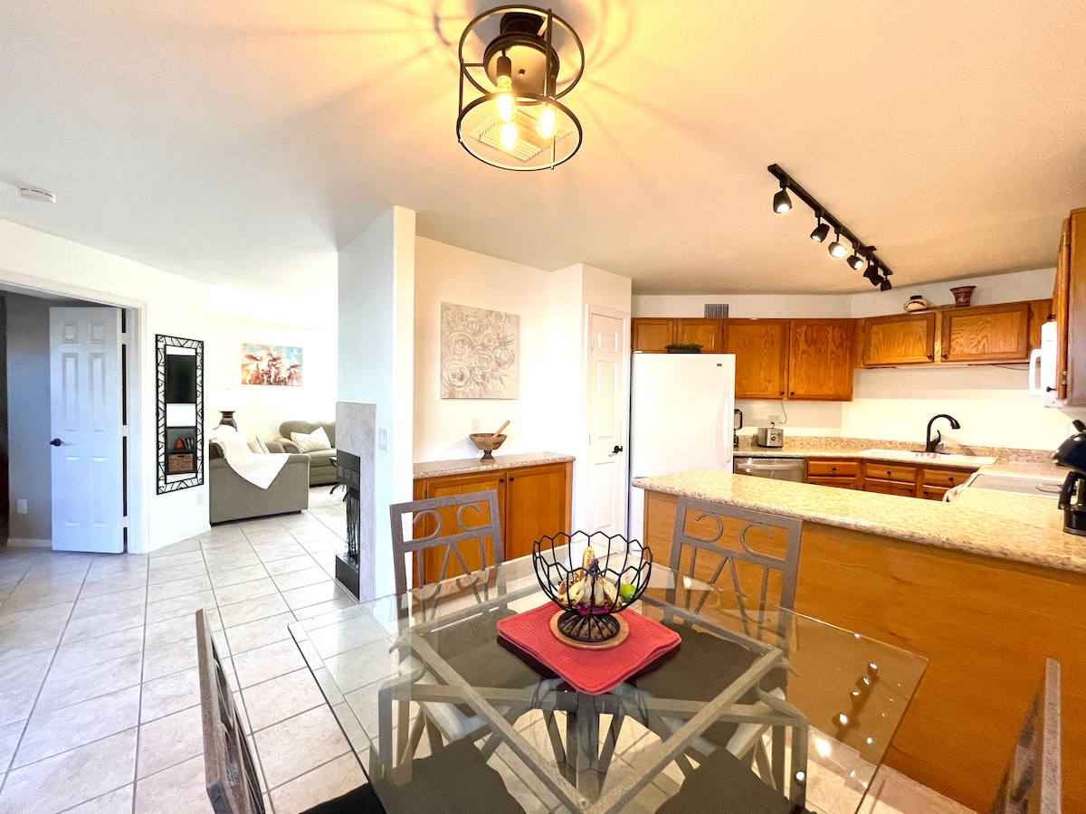 🌵 Stylish Desert Retreat with Pool & Patio Relax in a gated one‑bedroom condo minutes from Sabino Canyon, Ventana Canyon, and La Encantada. Enjoy resort‑style amenities including a heated pool, two hot tubs, tennis and pickleball courts, plus covered parking with EV charging. Inside, unwind by the fireplace, or sip coffee on your private patio. With fast Wi‑Fi, a workspace, and a plush queen bed, it’s perfect for adventurers, couples, or remote workers seeking comfort and convenience.